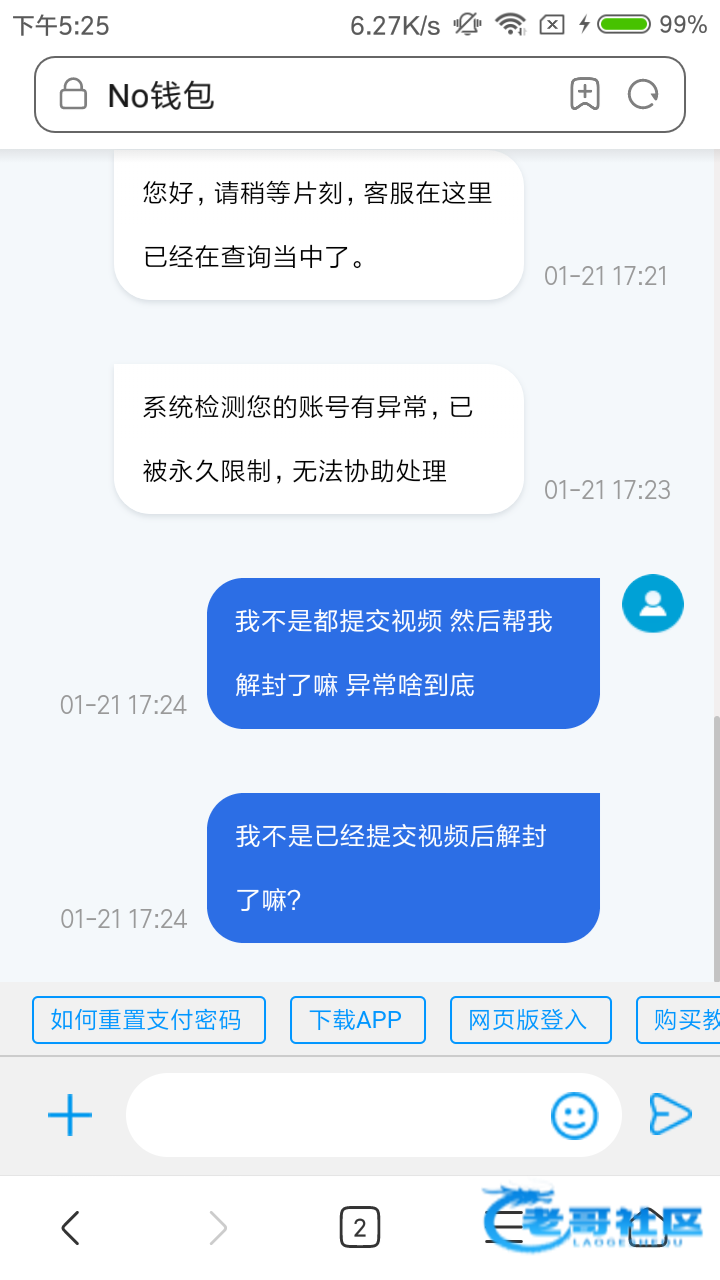 前面发了个帖子抱怨一下开个加速器就冻结我账号,后来想了下用的顺手还是去解封吧,提交了相关录屏和自拍,给我解封了 ,能登陆了,发现买法买币,再去找客服,给我说永久封禁,6,还好里面没钱