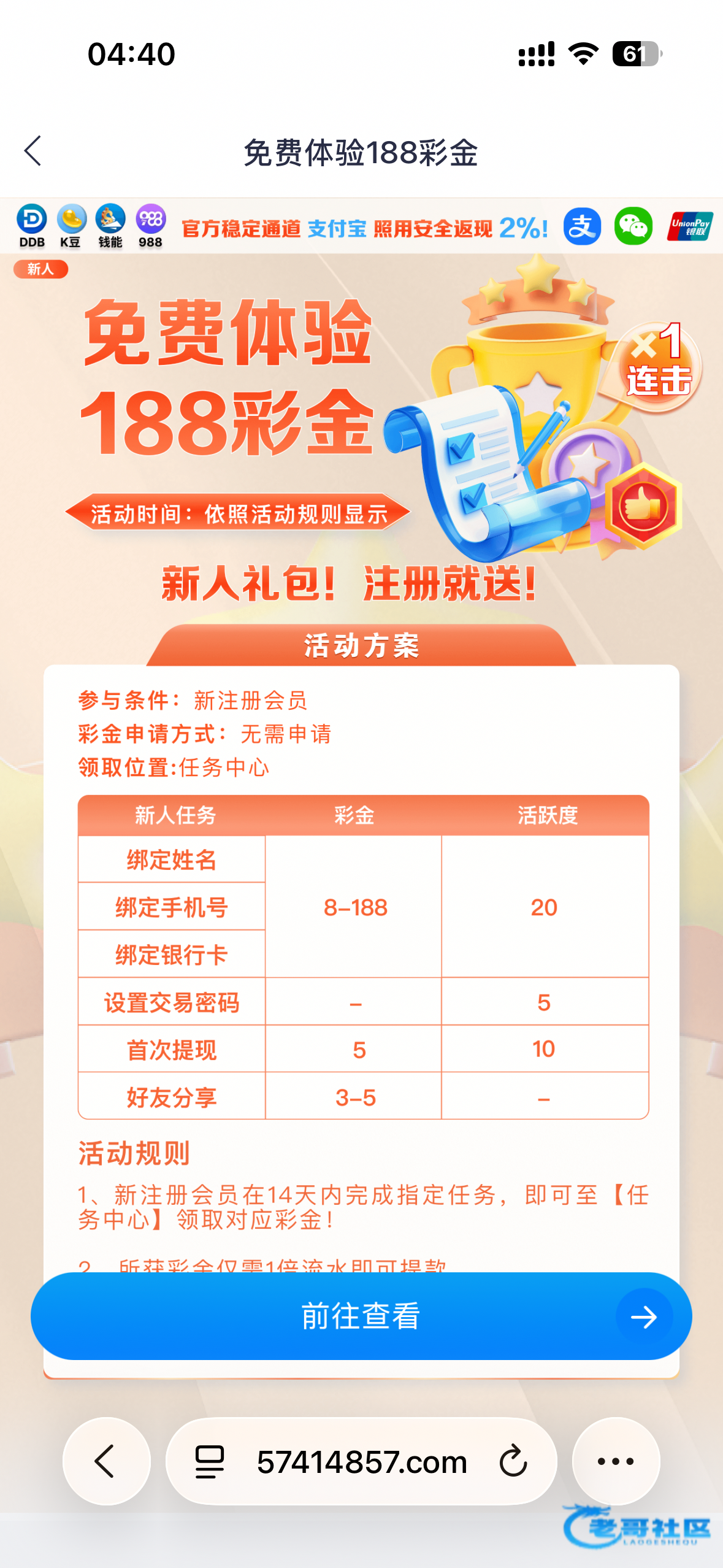 昨天下午注册的 本来想着第二天领彩金