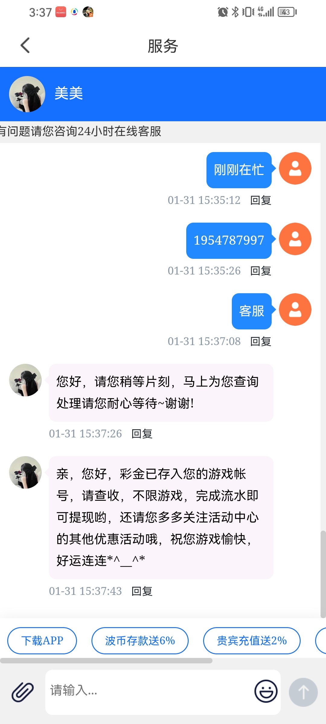 发短信过来的,黄播台连发了两天短信送了两个9,今天打出来了想碰瓷的去试试吧