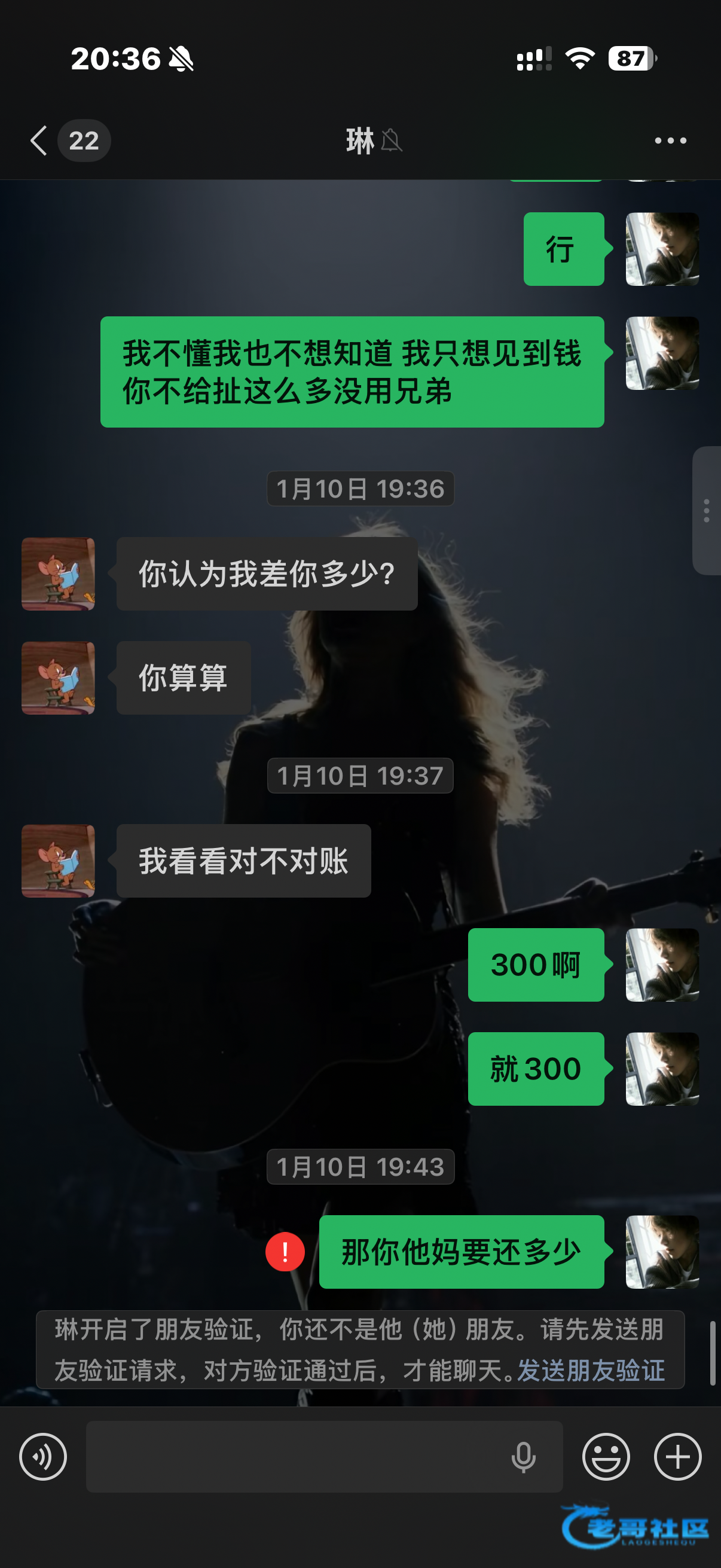 来老哥网也有两三年了 也结实很多个老哥 有玩得好的 也有互相对骂的 和我玩的好的 关系也有好的大红过没差过 团饭 拉单 团出去也有三四万 没钱吃饭 没烟抽 没亏待过 万万没想到 为了300块钱而跑路 也是都是赌狗 什么事情都可以做得出来 兔子急了还咬人 老哥们交友要慎重 吃饭 没有烟抽可以给 借钱一定不要借 有钱赌博都不还你 顺便曝光一下 名字叫林子 手机号*** 旺旺名字也是林子 新软件也是林子