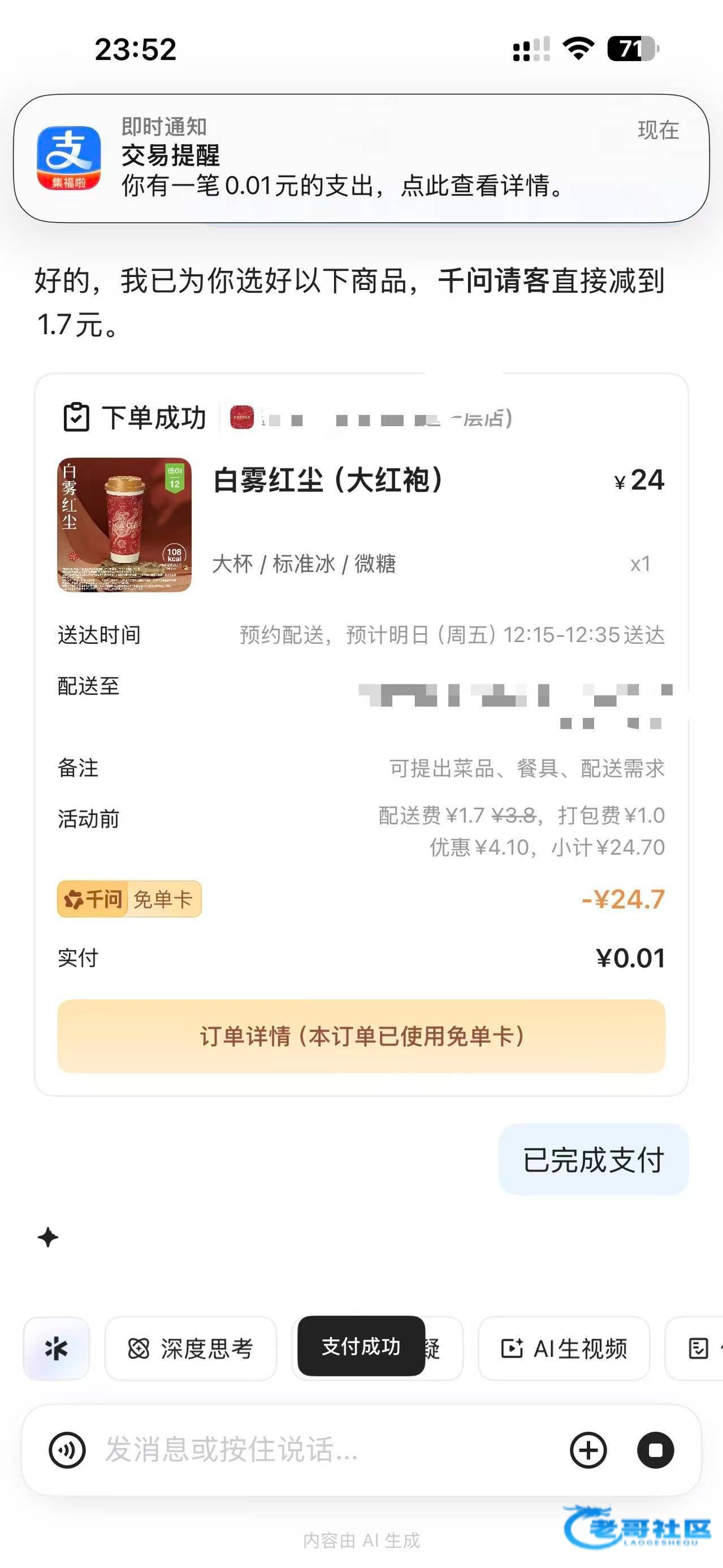 【千问白嫖奶茶炸鸡等等】