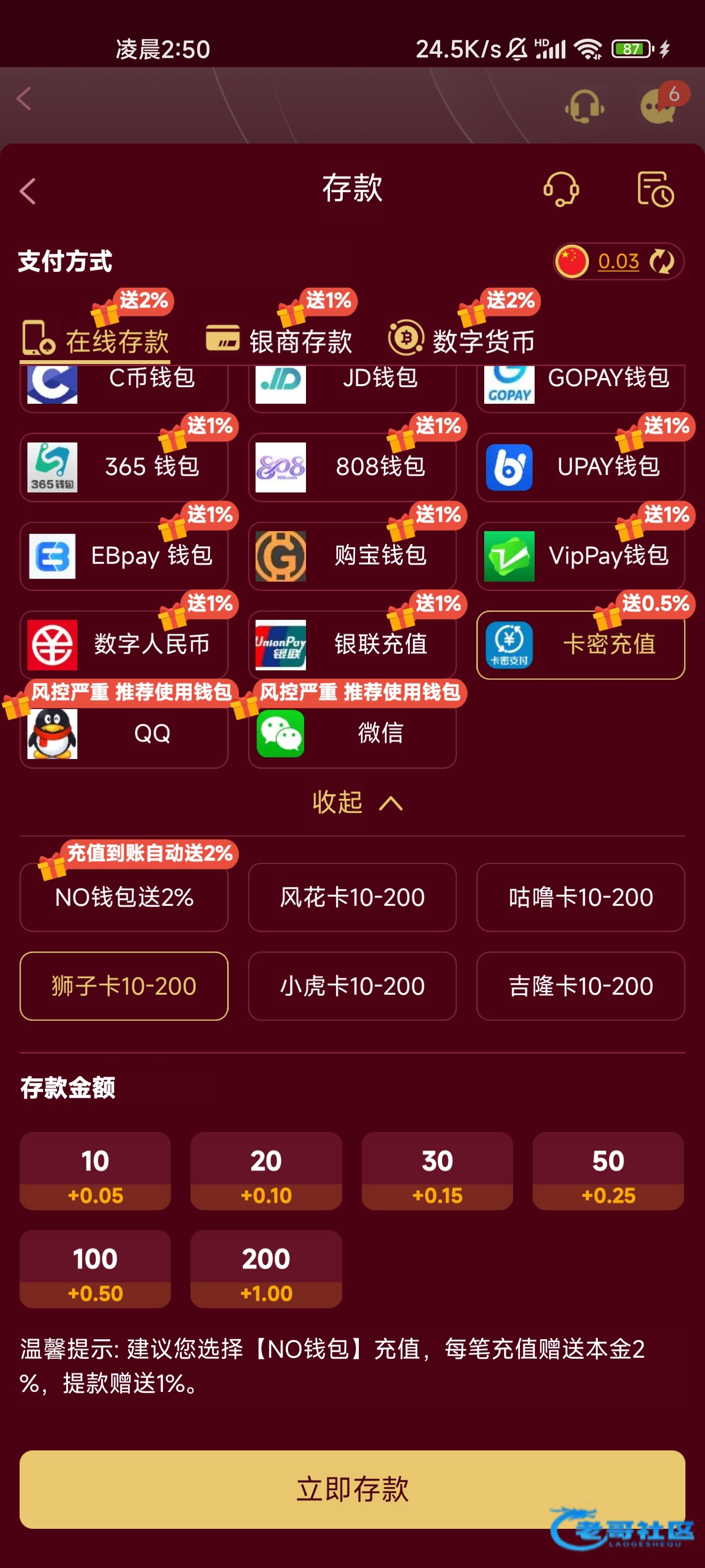 老哥们,问一下哪个台子能用狮子卡充值啊?