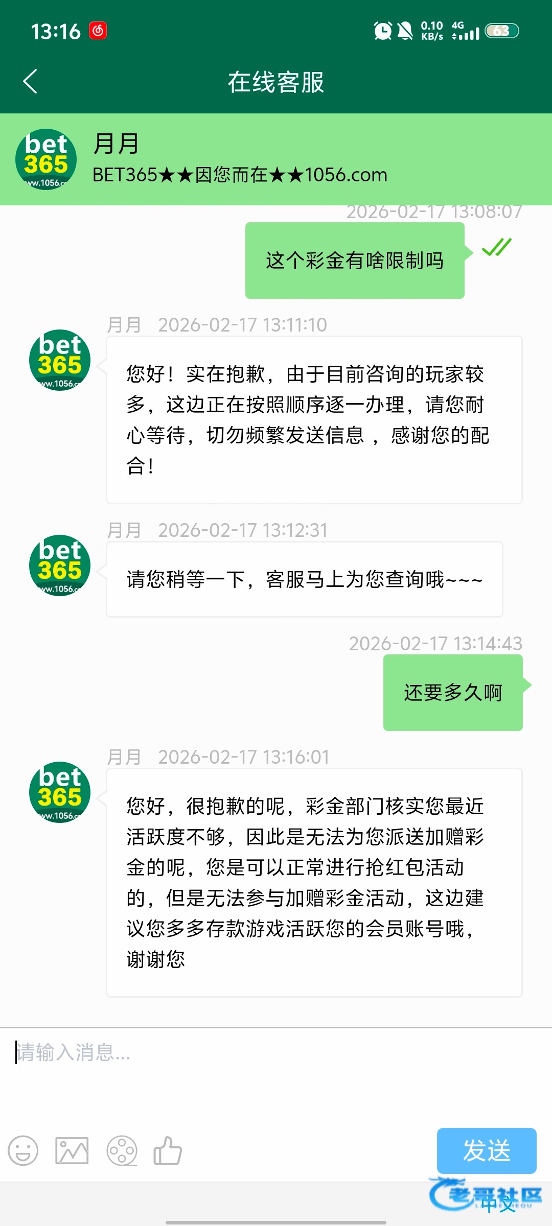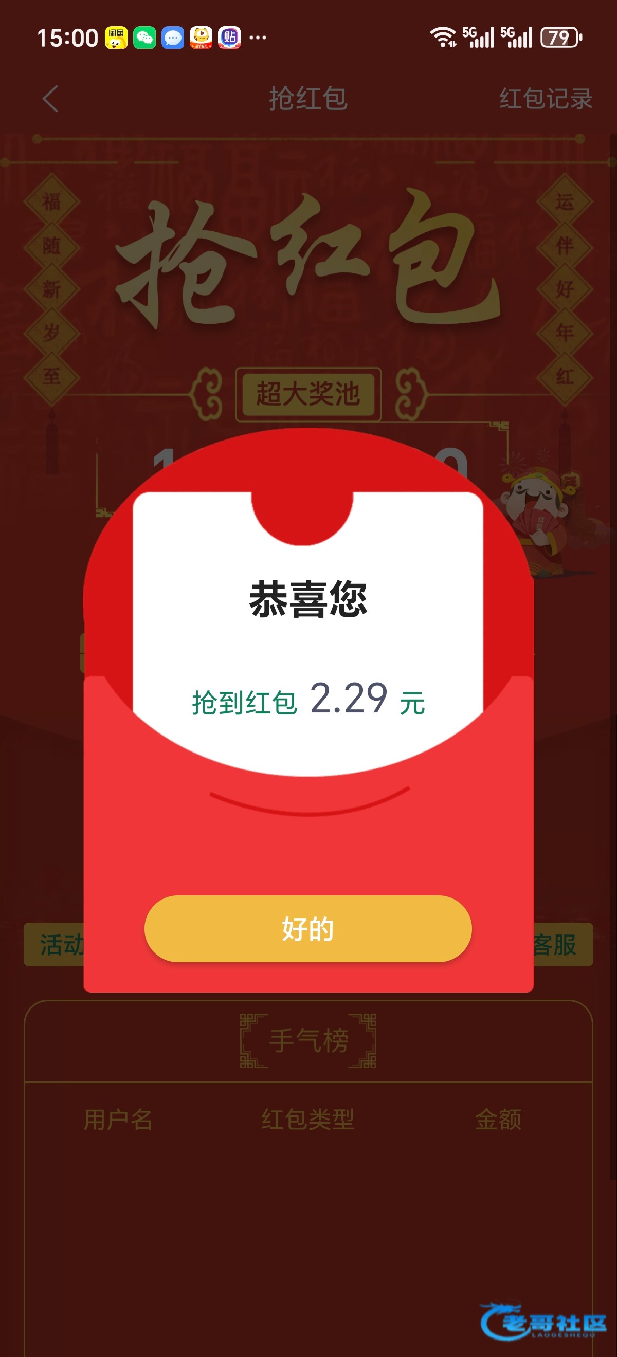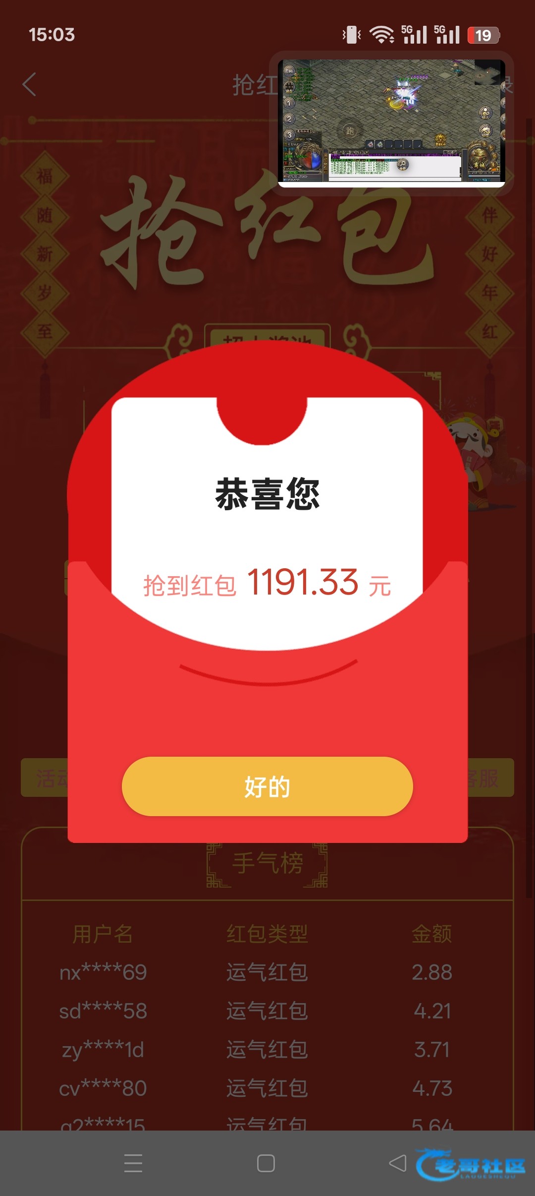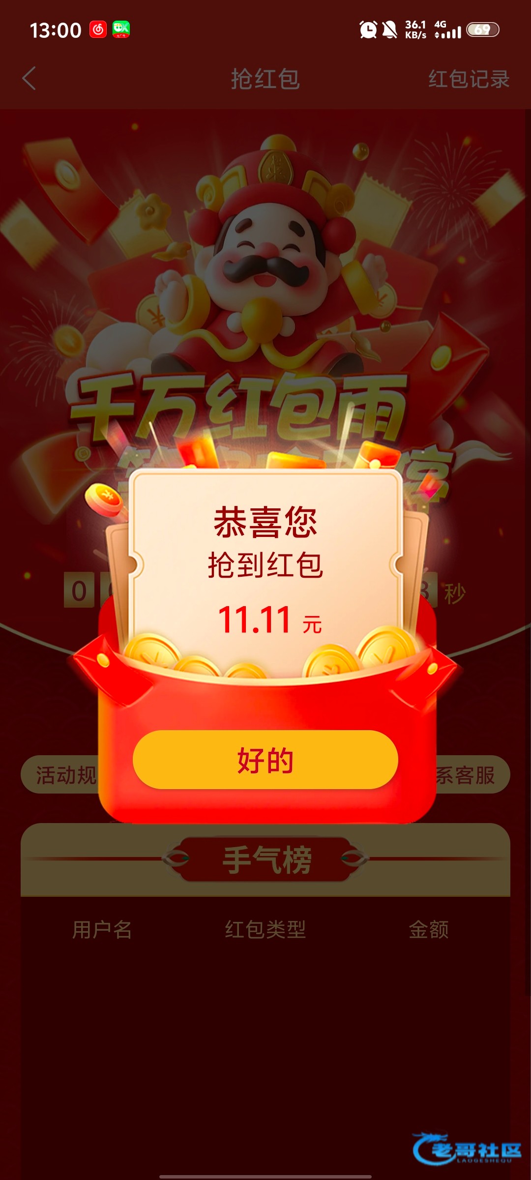 这个傻逼1056好不容易抢到一次豹子说不活跃不给送
