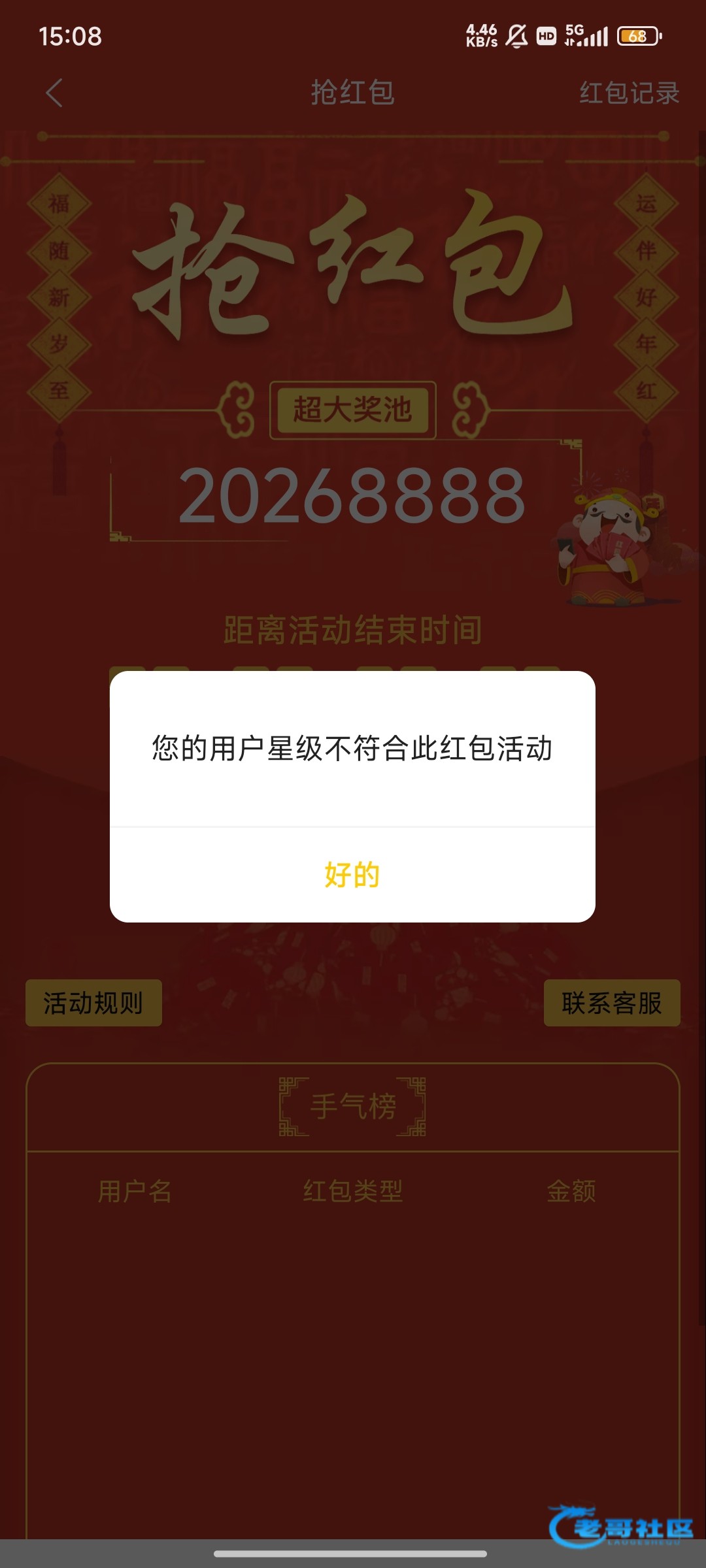 平时668这个台每天还抢200左右 春节红包直接几块钱,15天少好多