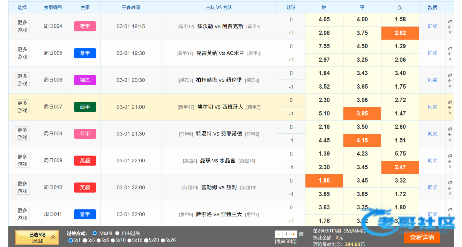 老哥们看看,能中几场啊昨天6中5,错了毕尔巴鄂