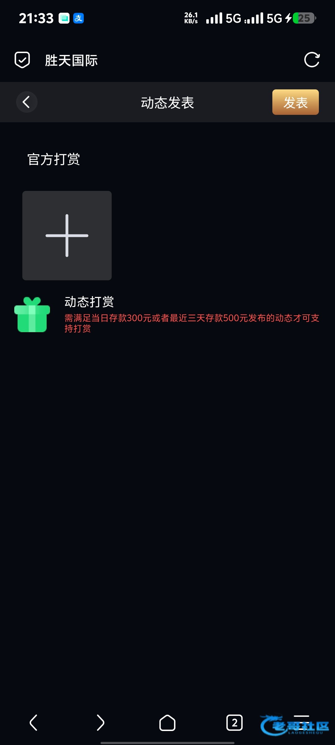 需满足当日存款300元或者最近三天存款500元发布的动态才可支持打赏不知道值多少钱