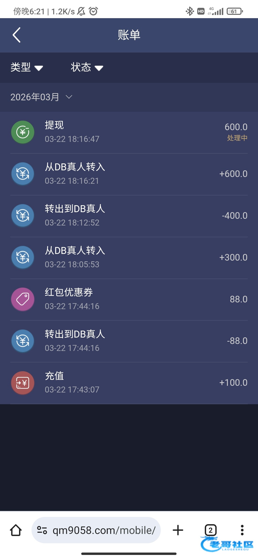 首充100领了88的券,db真人打到600提现,提现到账好慢呀,有点害怕给不给到账