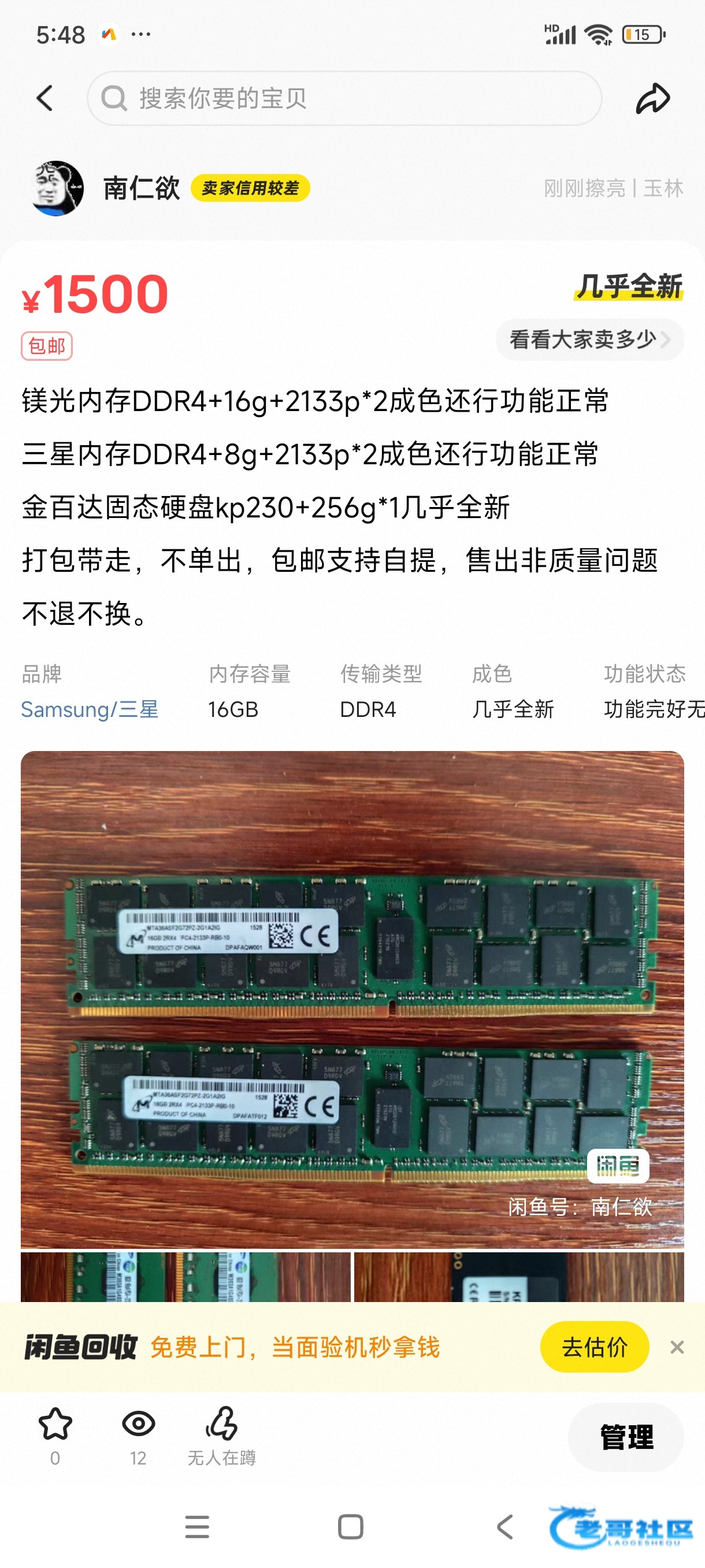 现在内存涨的厉害,把自己家电脑内存拔了挂闲鱼上了