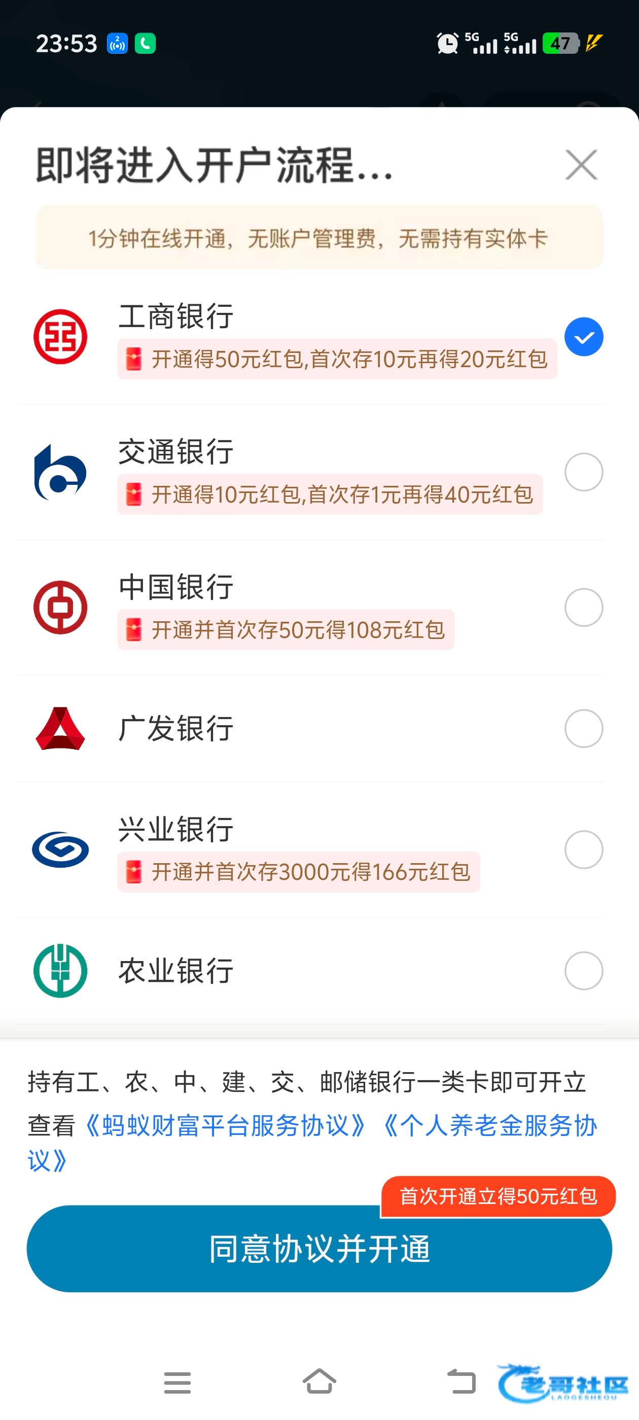 必须绑定工商银行卡才有50其他的没有我没工商银行卡就不搞了