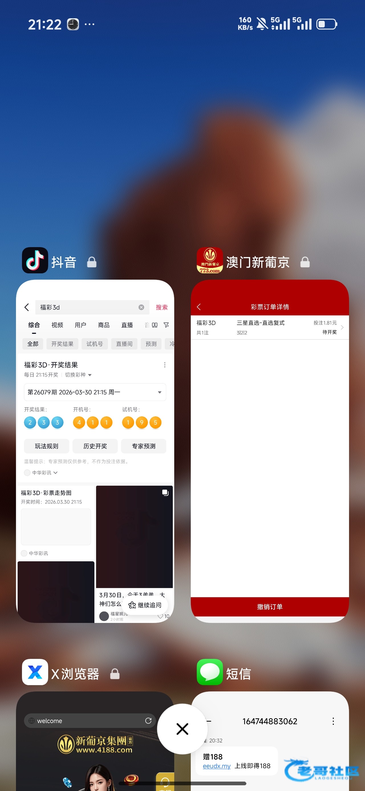 今天买完彩票身上只剩1块五毛钱,没办法只能干日结,幸亏昨天看走势,觉得这个号好,就买了,以前都是最少5倍起,就今天因为没钱,只买了1倍,真是天无绝人之路。