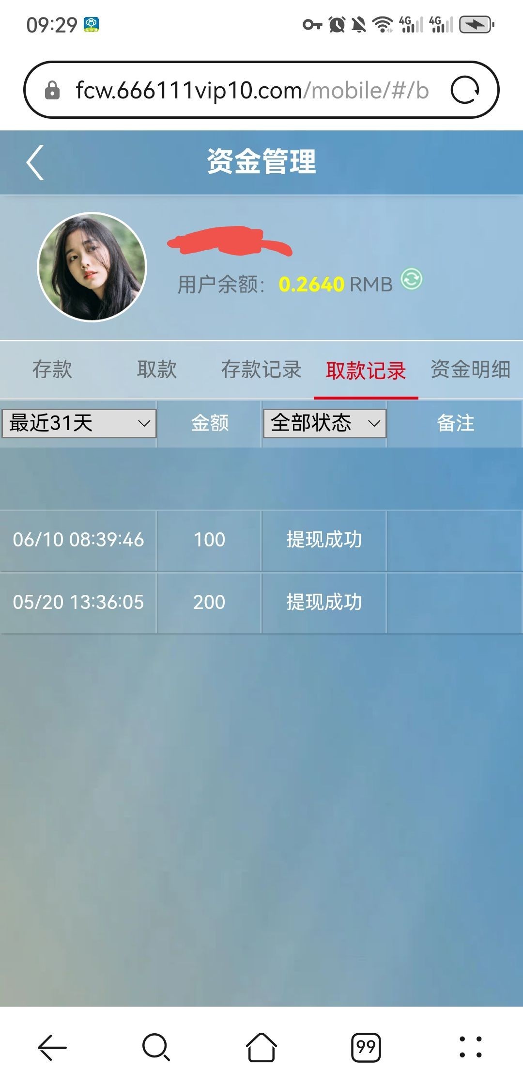 出款情况:自测(