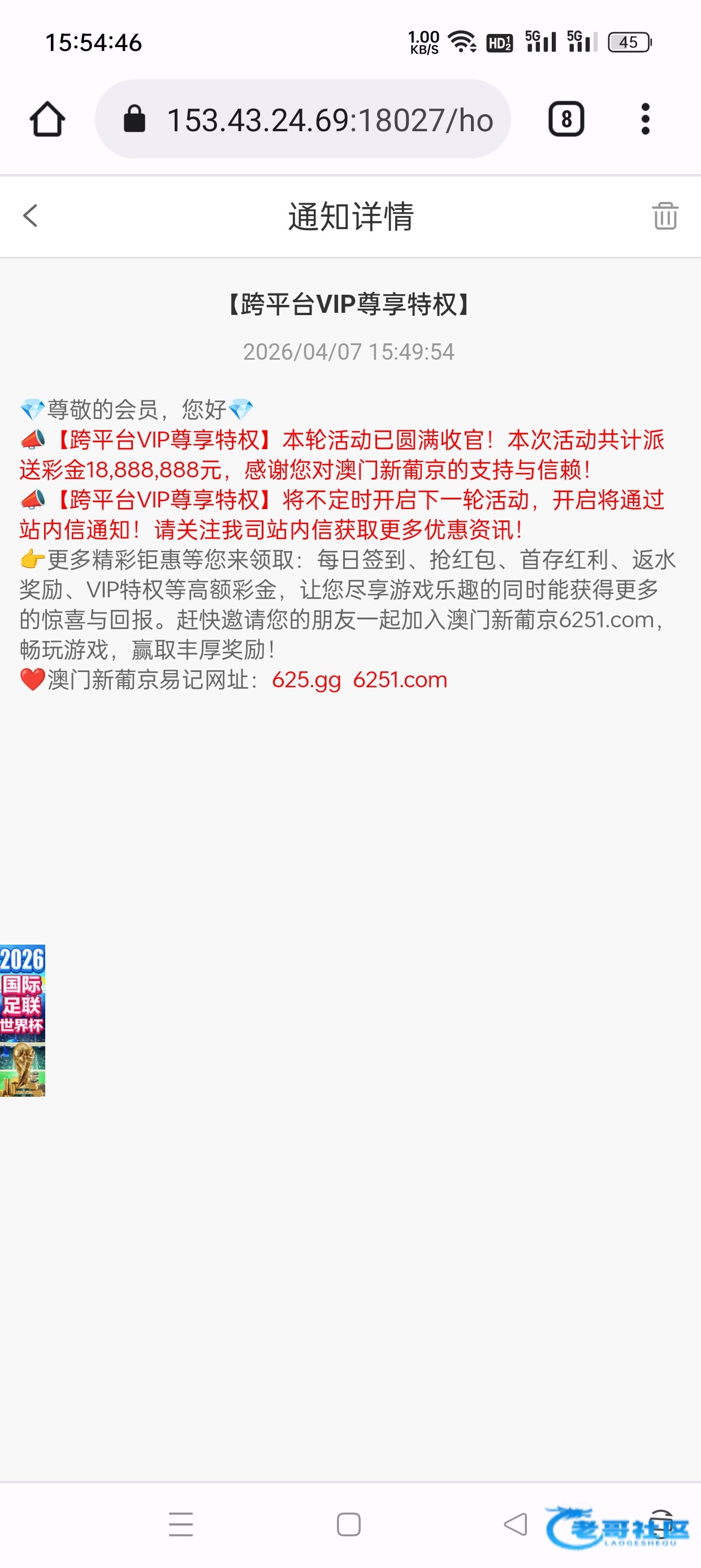 这傻逼网为了送5块钱彩金特意打电话,接完狗庄电话 反诈中心的电话马上就来了。我一天至少收到3-4条这台子的短信但我就是不去玩,天天打电话发短信骚扰我