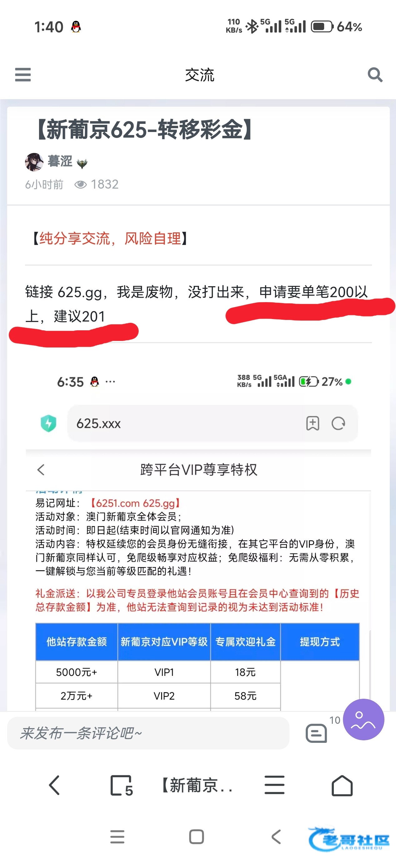 链接 625.gg,我是废物,没打出来,申请要单笔200以上,建议201