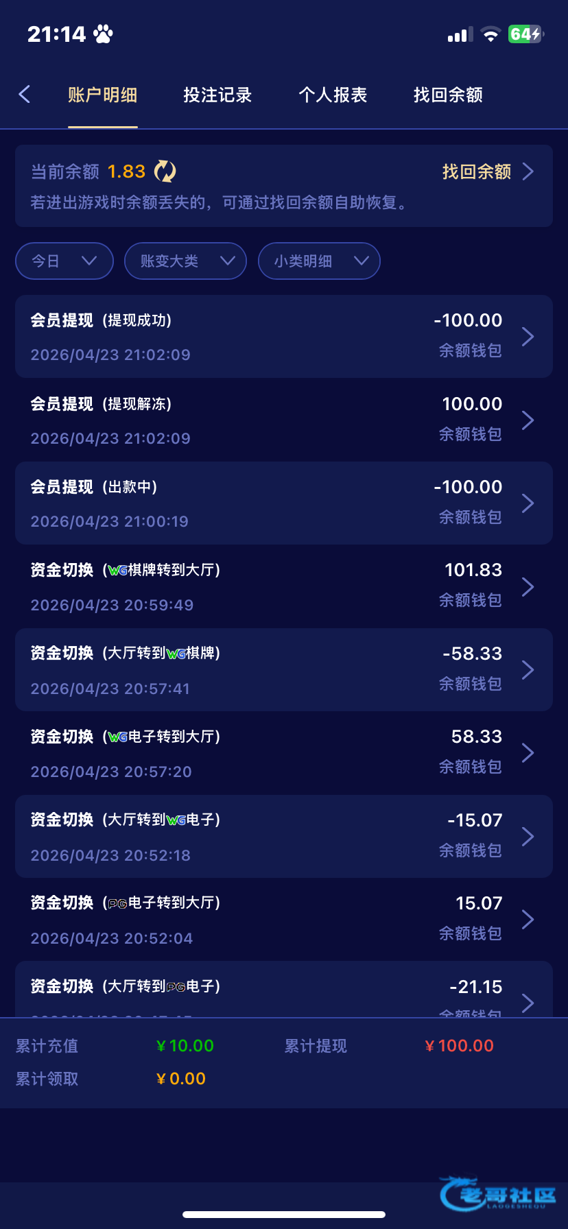 超级无敌大黑台 之前充值100提现600都封号