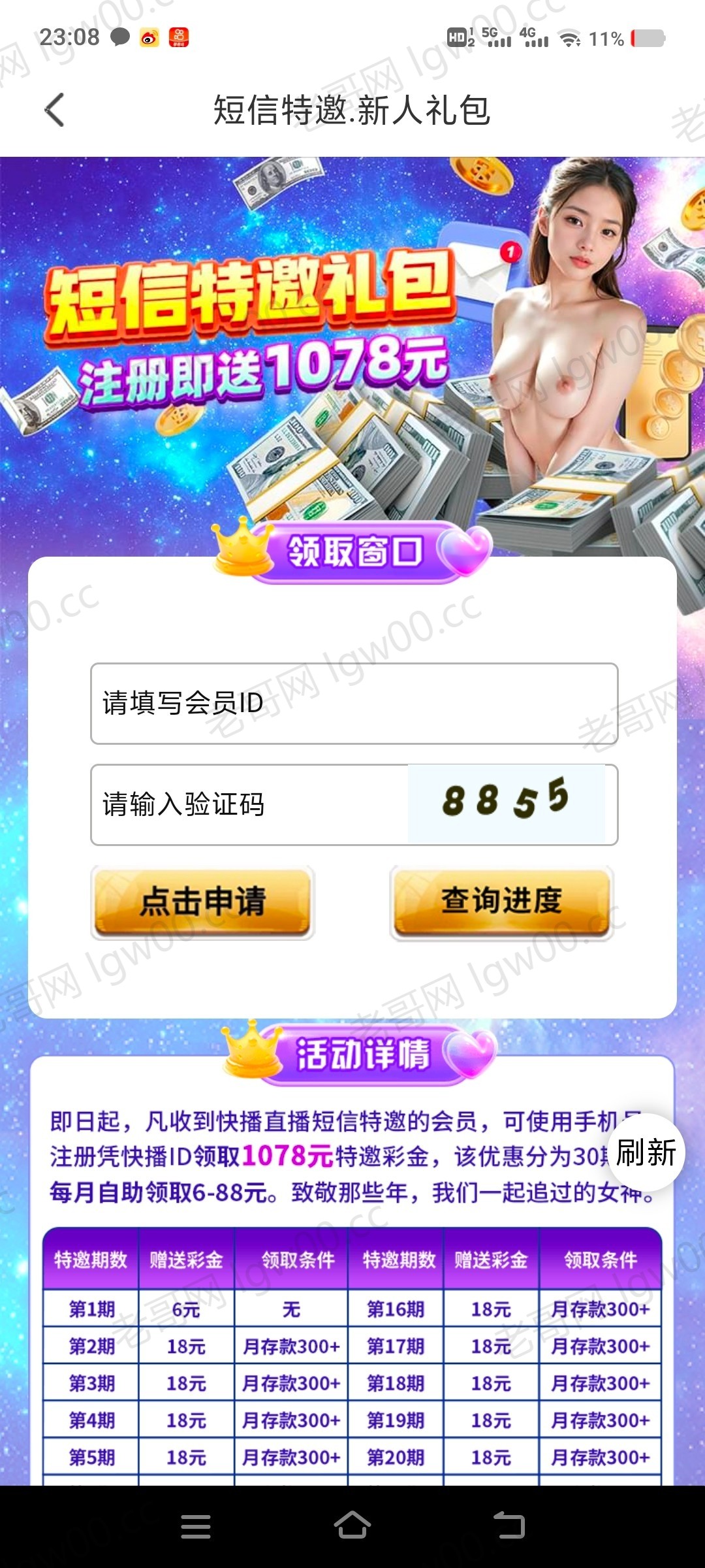 注册活动大厅申请6秒到,我是收到短信的你们看看有没有