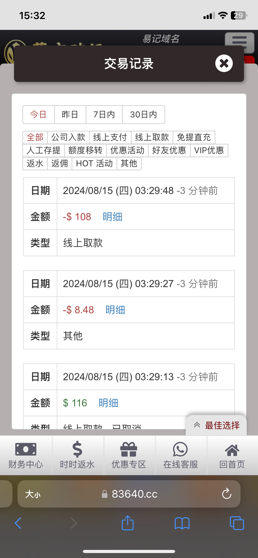 和昨天那个一样 上号就有 限制钱包提款108 提款到账了没有充值过 4064.com