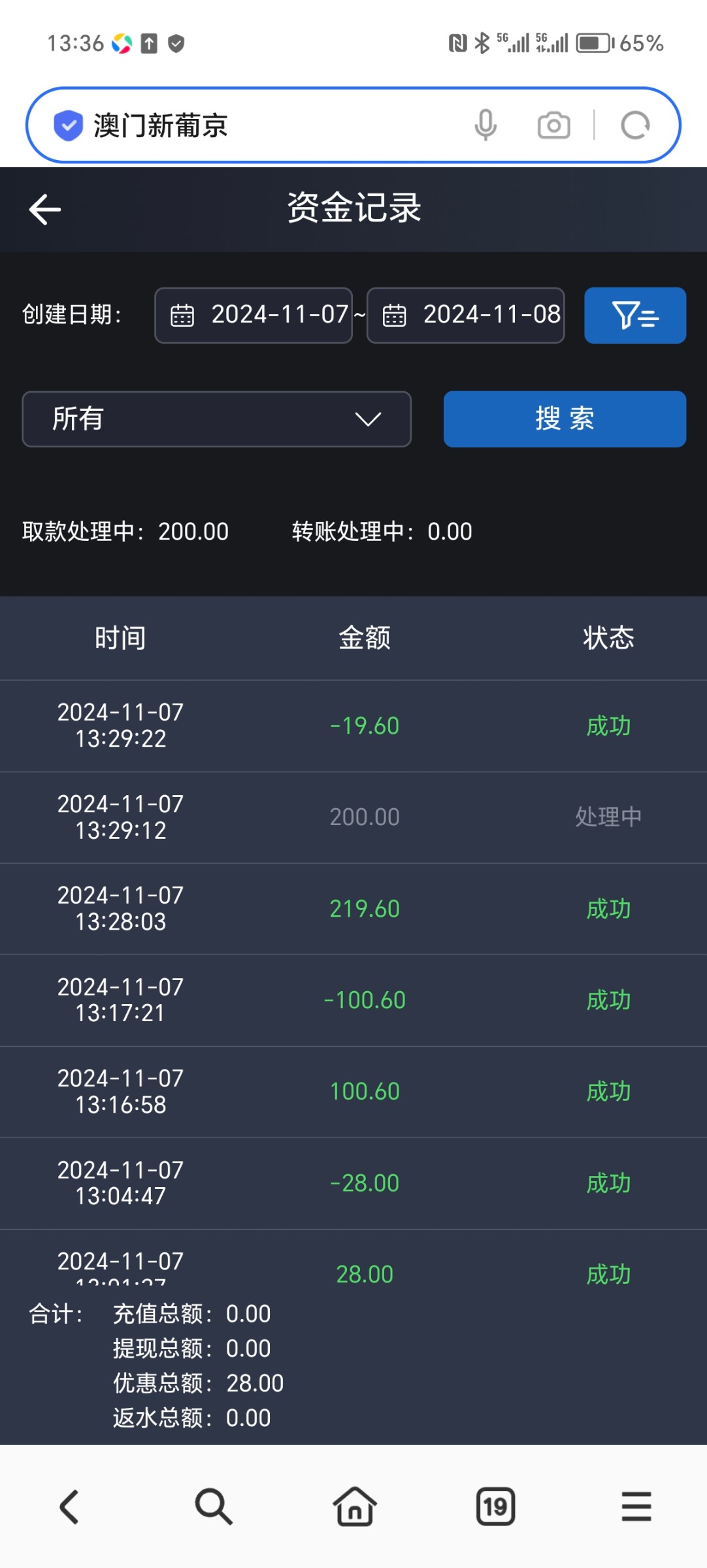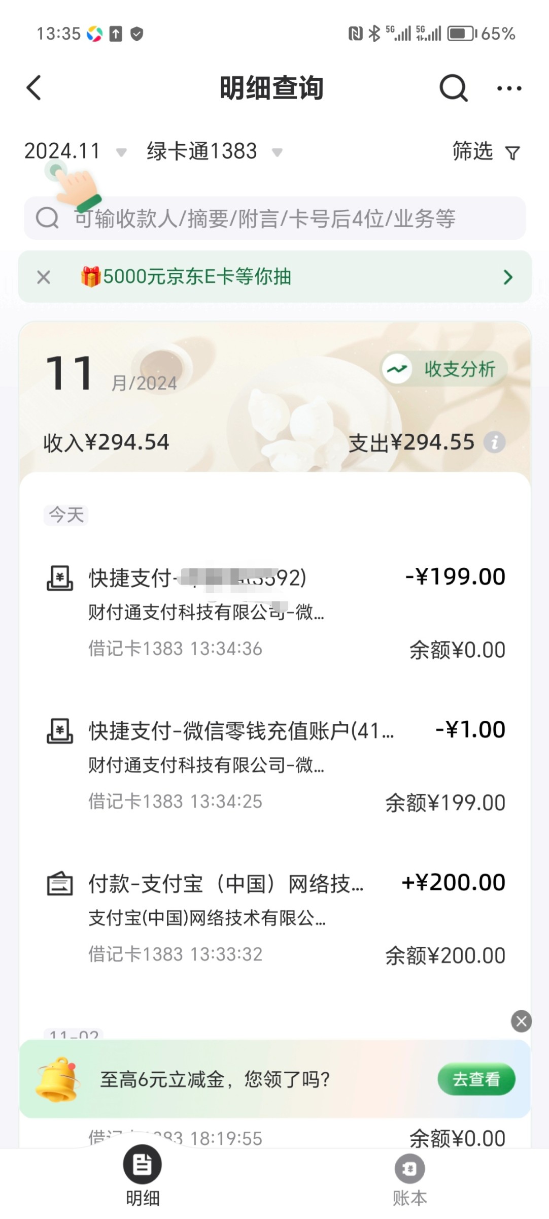 出款情况:自测(
