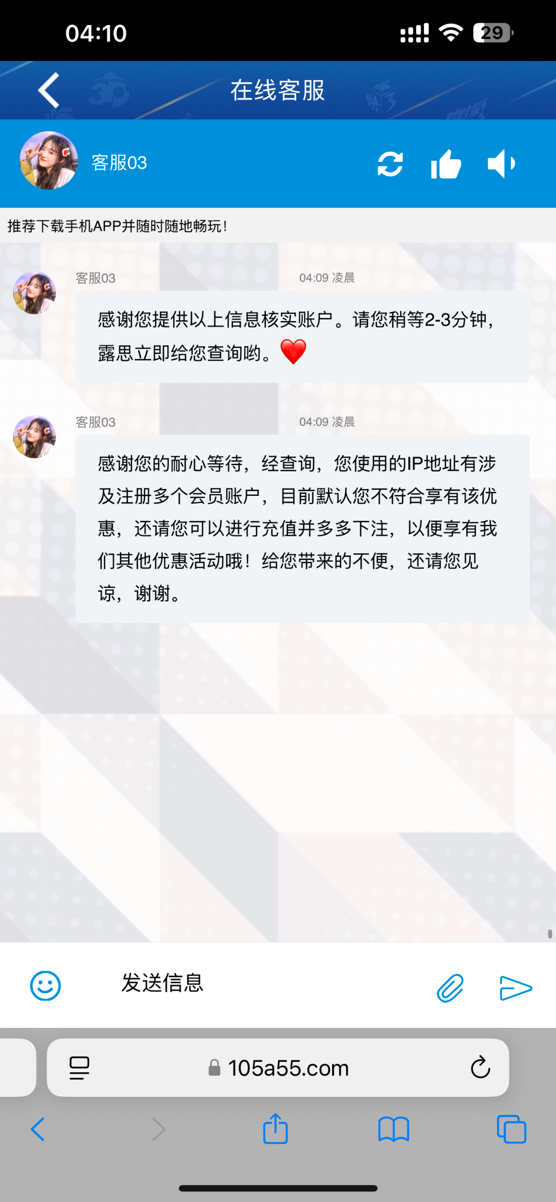 105彩票 有号的应该都几年了,去试一试,优惠里边没有这个,直接联系客服申请回归彩金就行了,两年没登陆了,给了我388提现秒了网址 105.com 前天领了忘记发了