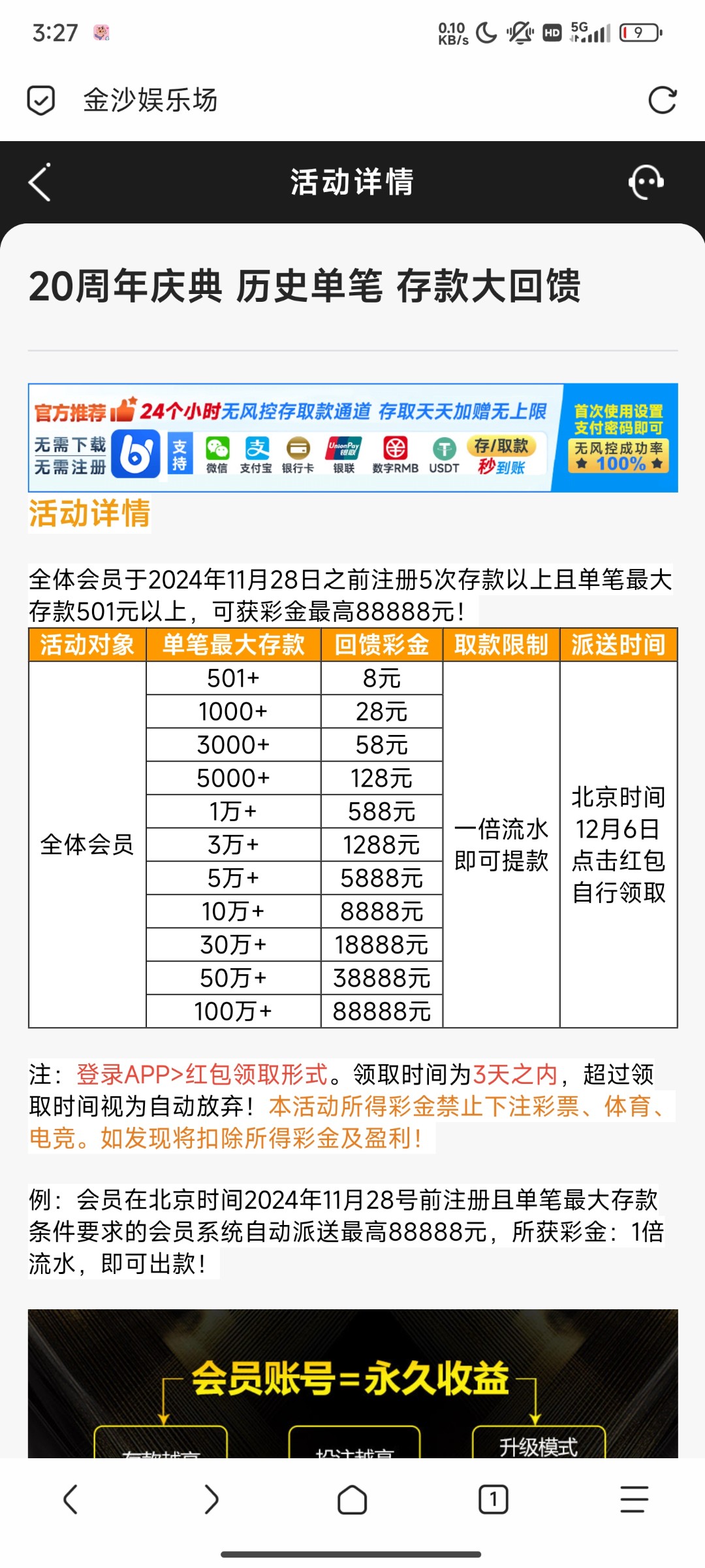 3号和6号有号的老哥们到时看一下历史回馈没充值过的18充值过的58只能pg,这台子pg杀得很假pg来着,老哥们不要抱太大希望,6号还有个存款回馈限制啥游戏自己去看了