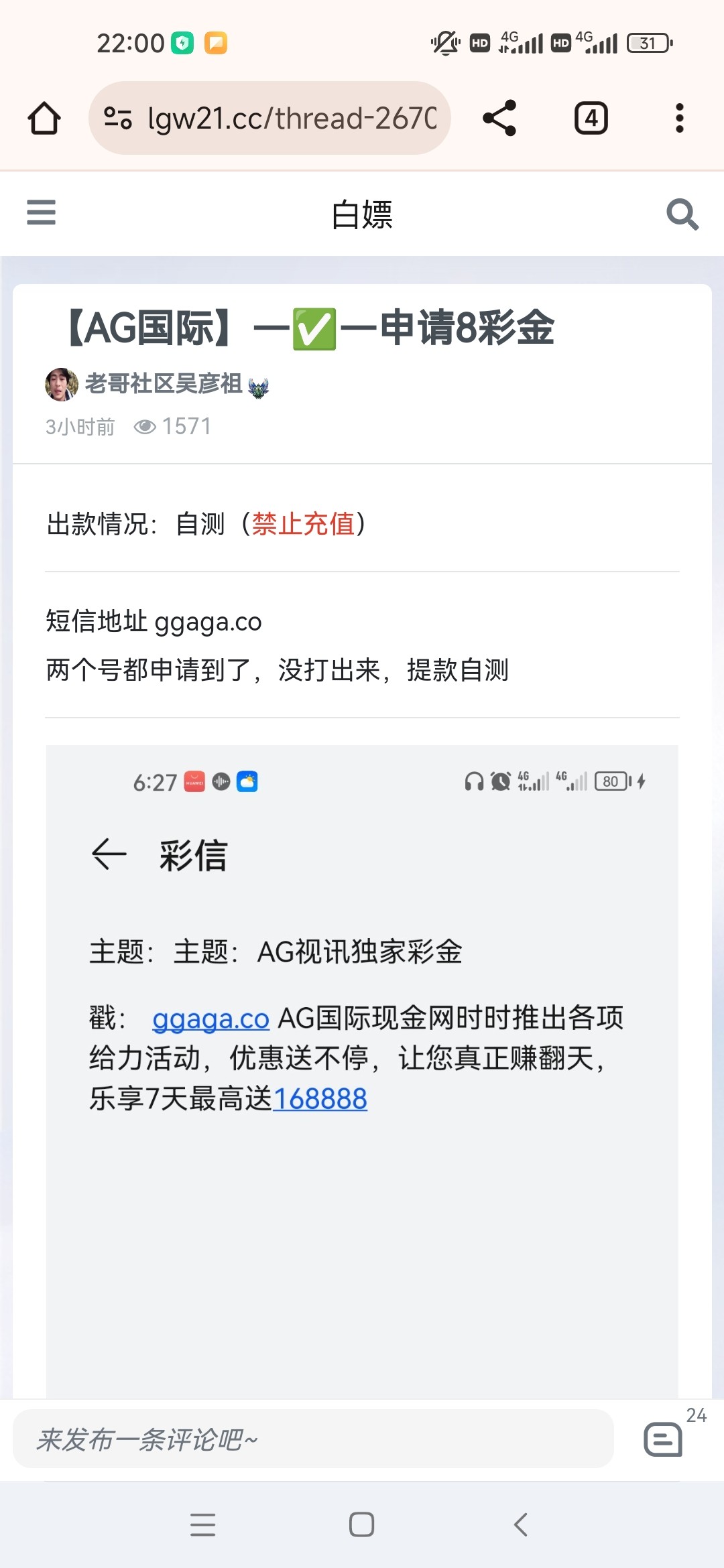 @xiaoren0408 ,Ag国际 有个老兄发帖了 地址ggaga.co