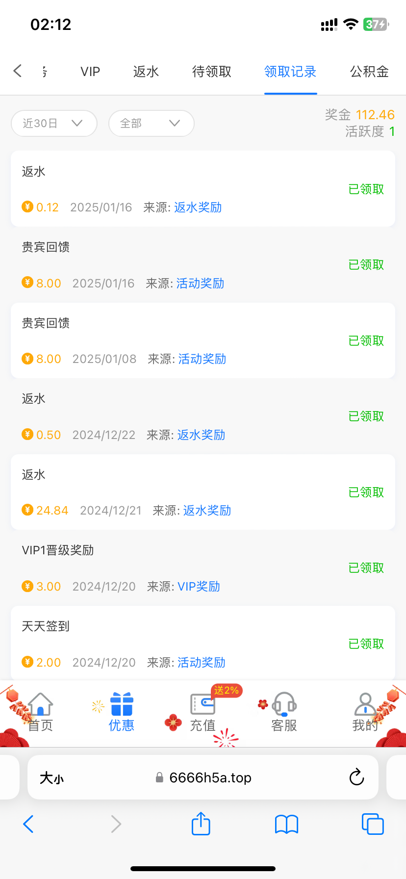 上个礼拜领了一次这个礼拜又给一次不知道没充值过的有没有回馈 https://6666h5a.top/