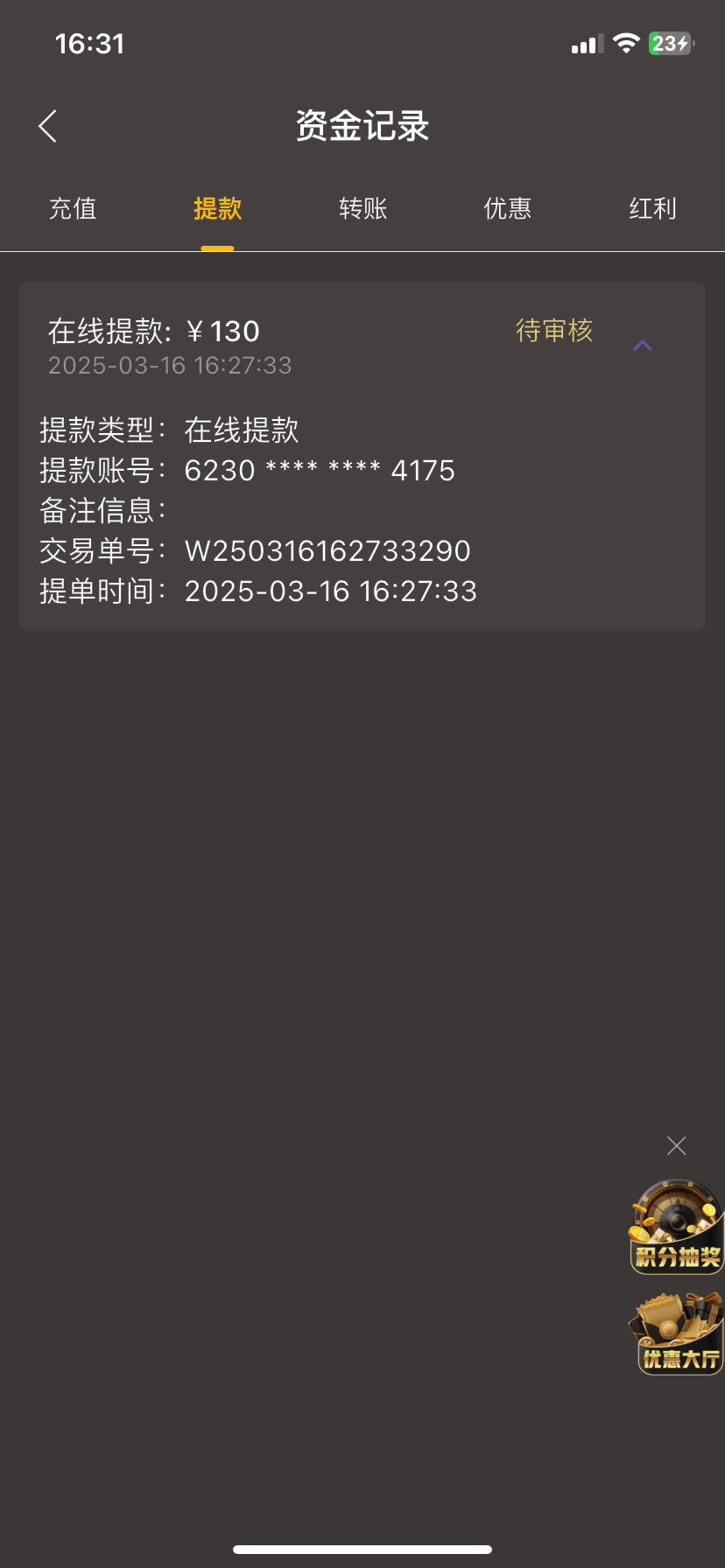 s1999115 ▶ 回头是岸 我都领到了 打出来了 被扣除盈利 真的垃圾这个台 2025-3-16