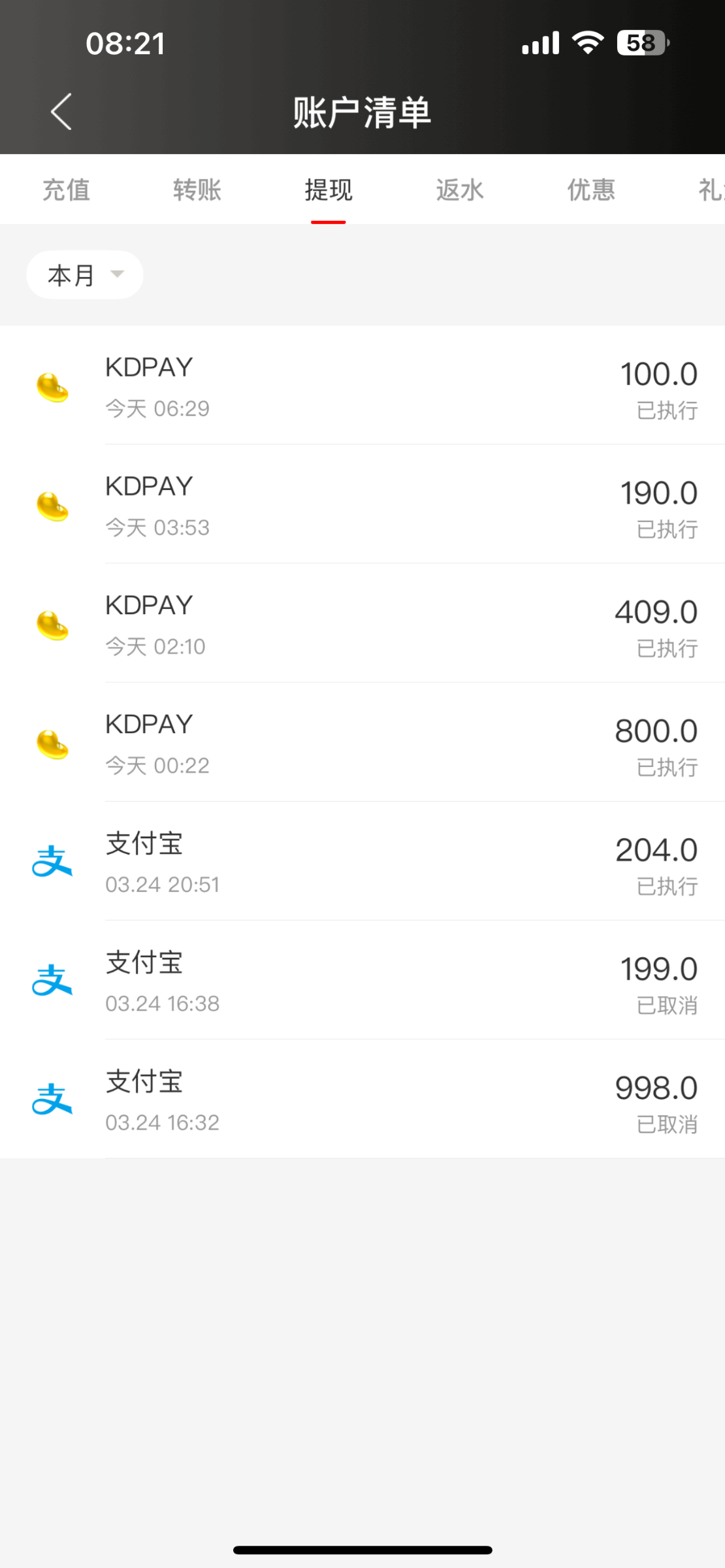 我领的体验金出了2100没充,半个小时到账,出了支付宝