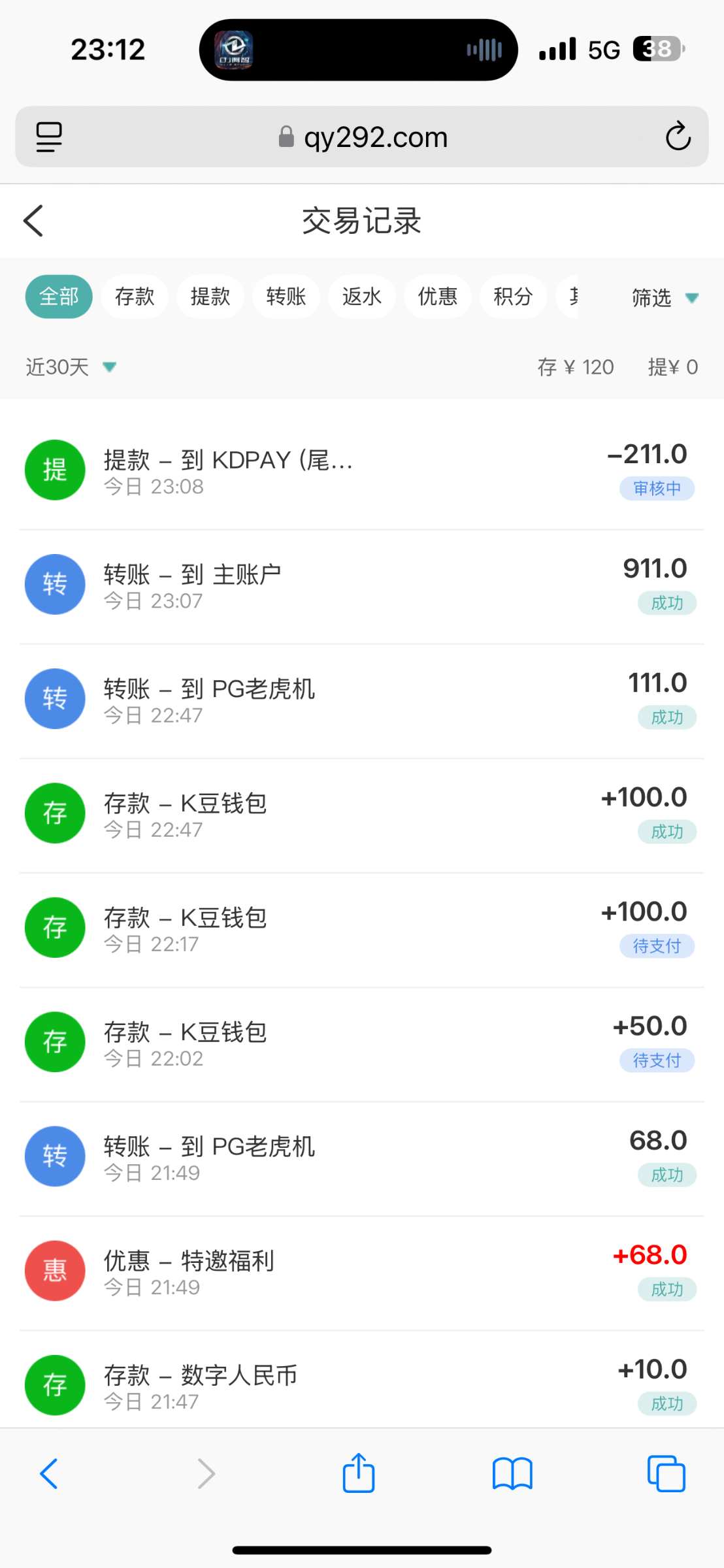 球友会水还可以 今天上去存120用了百分之66那个存送券 提了2400 秒到