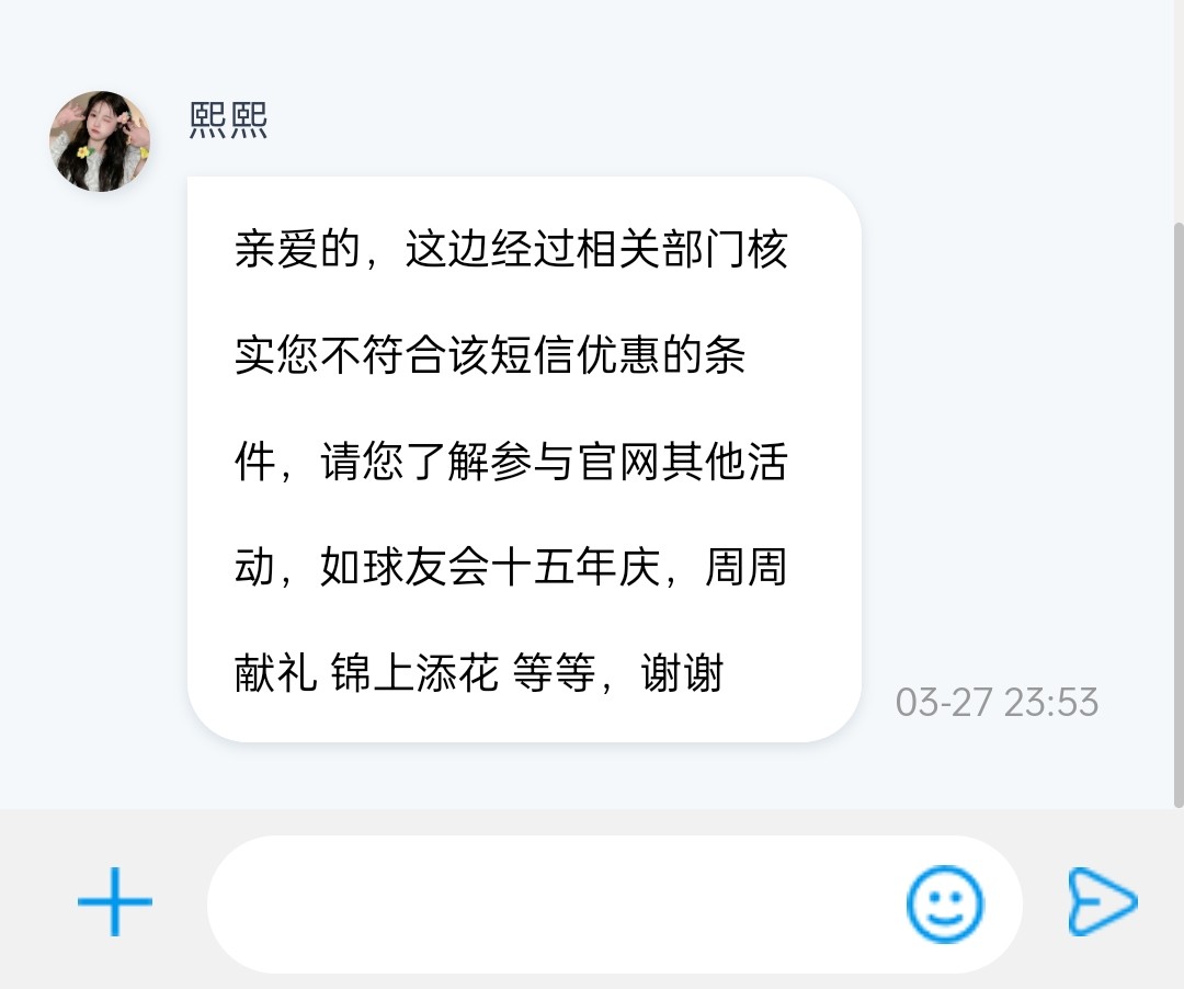 上个月优惠券玩了,这个月又一个回归优惠券,没有短信就拿下方短信图碰瓷,我也是拿短信找客服。 http://88637.org