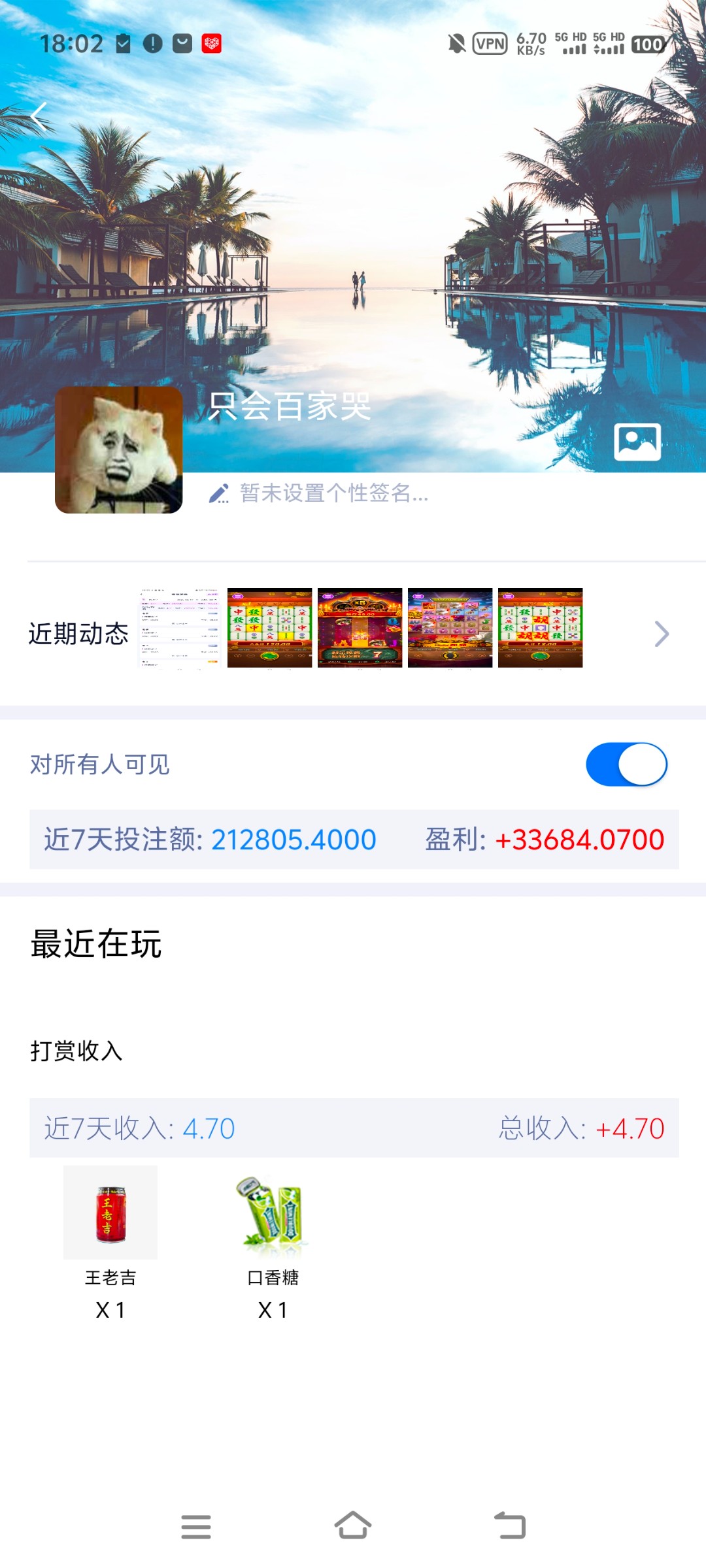 4月20兄弟们今天真的是难受的一批半夜睡不着手上还有几百块钱准备吃饭的钱想着冲200进去试试没了就不玩了还剩一点留着吃饭结果打啥没啥直接全没了白天直接去借了3万过两关结果又tm没了,说到底,赌还是自己太闲了亏了几百个了拿不回来了,这次真的戒赌了论坛我也不会在上了兄弟们有缘再见!!
