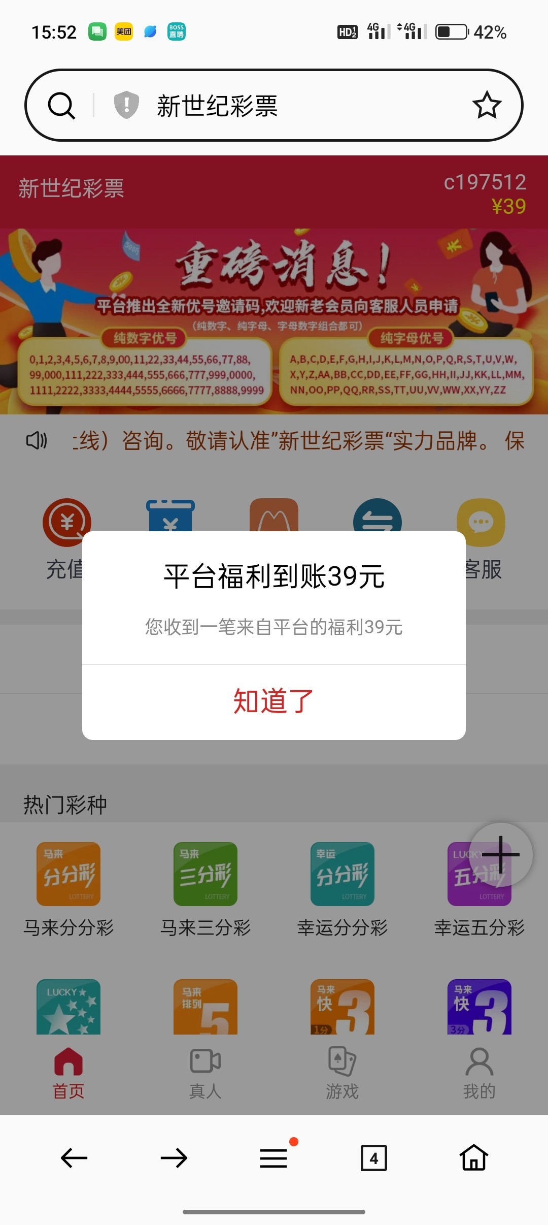 不知道是不是自动送的找客服没回我过了一会看就到账了