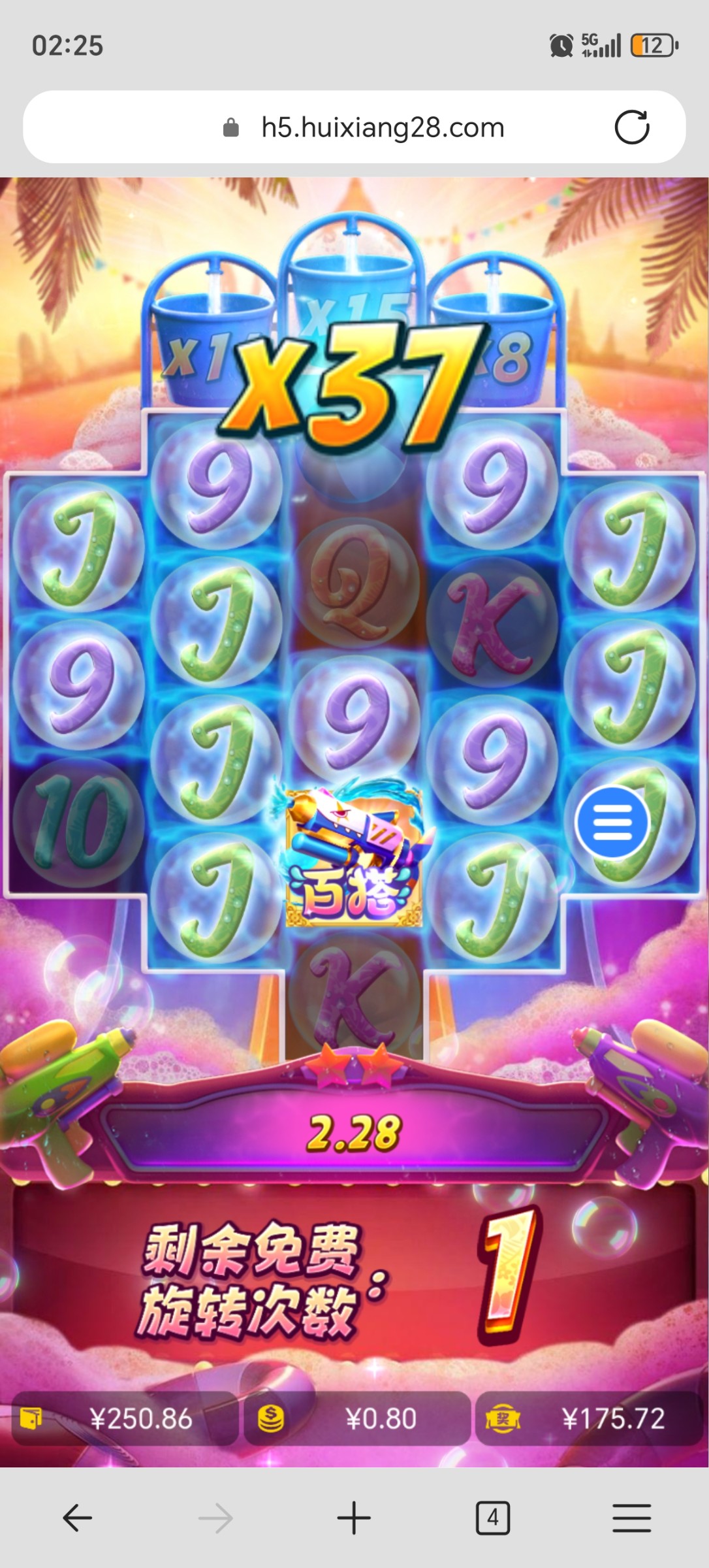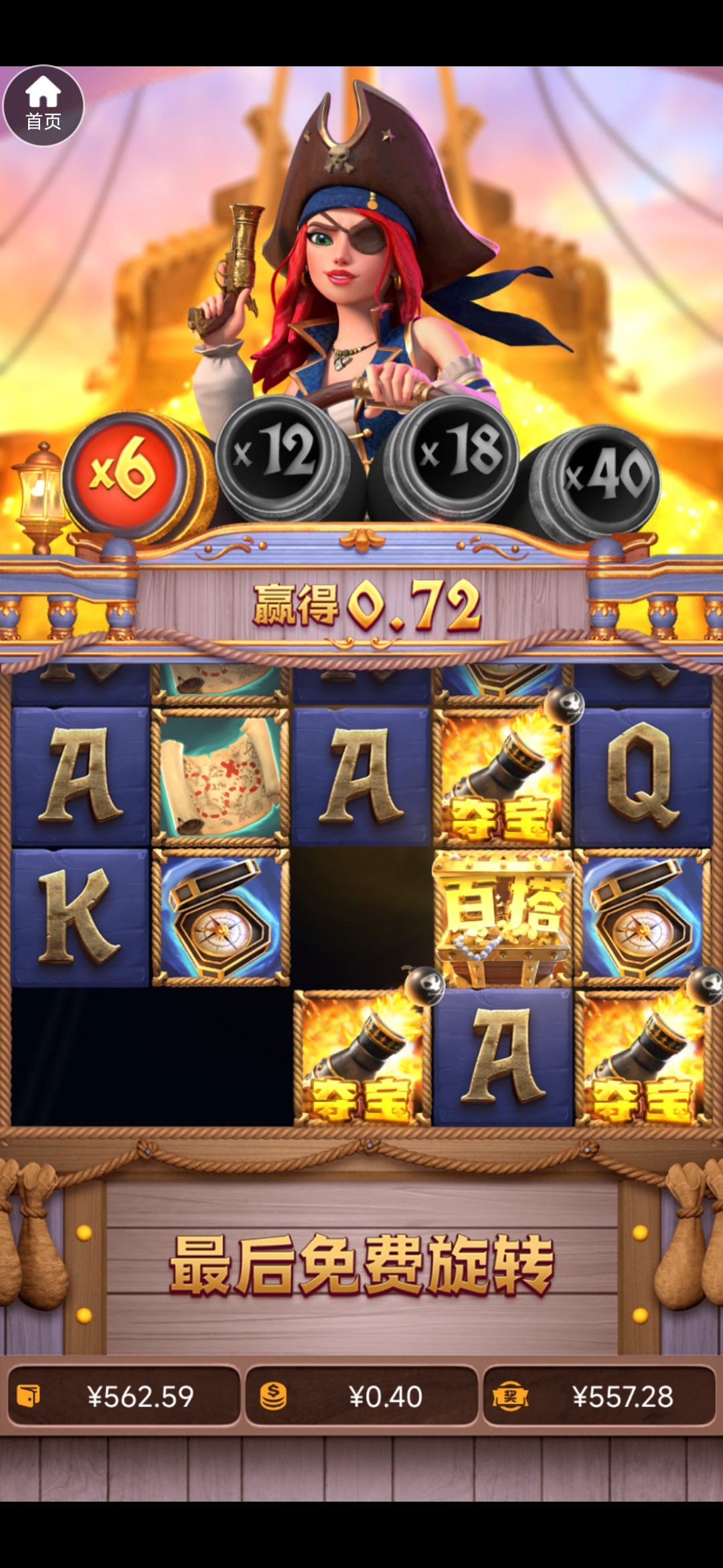 今天玩的 真没啥规律 前面一直吃 就是没水的样子 进免费就给十几倍 第七次进免费才给的