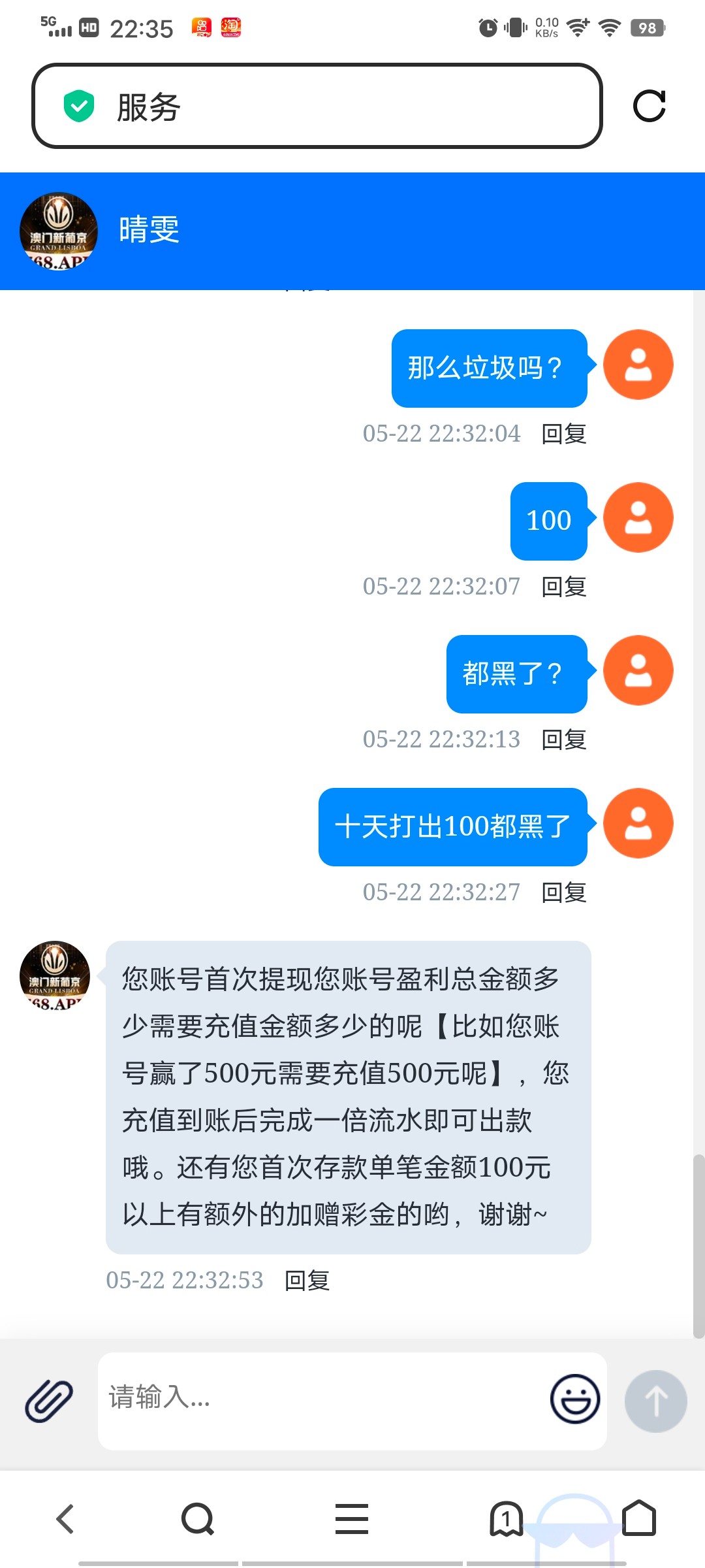 黑台,之前打上100提现叫我充100充了后面提300直接就说注单异常叫打5倍水