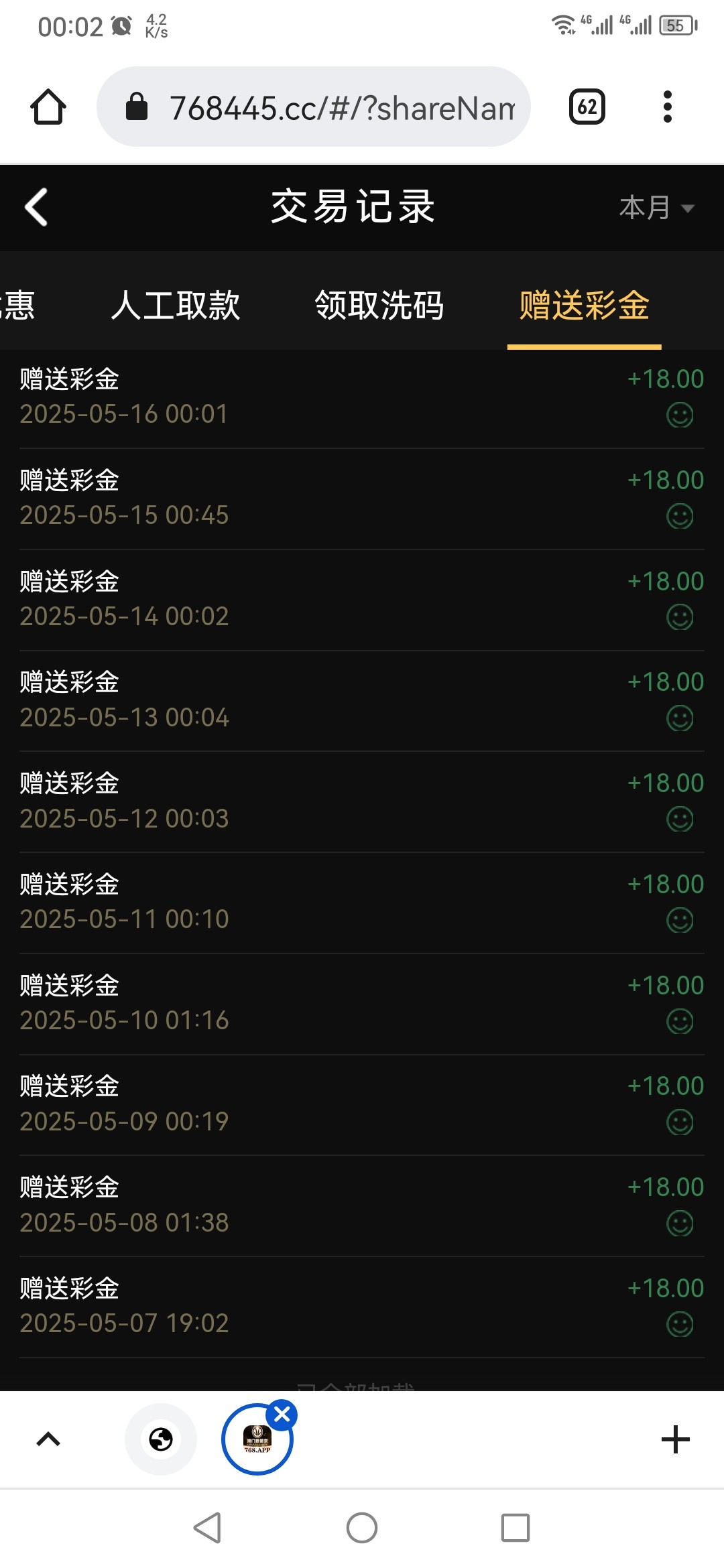 送十天十八彩金  我没打出来  自己自测网址:768.app  电话特邀啊  自己碰瓷