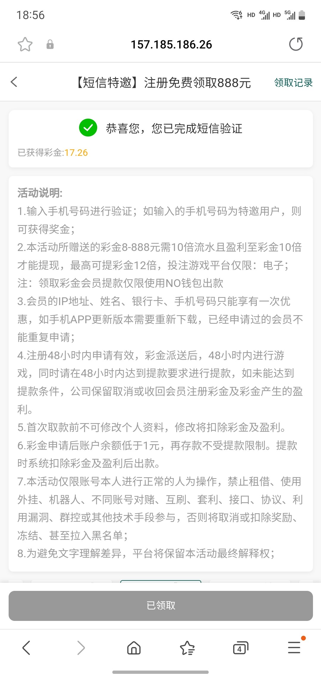 说我的ip已经领取过了