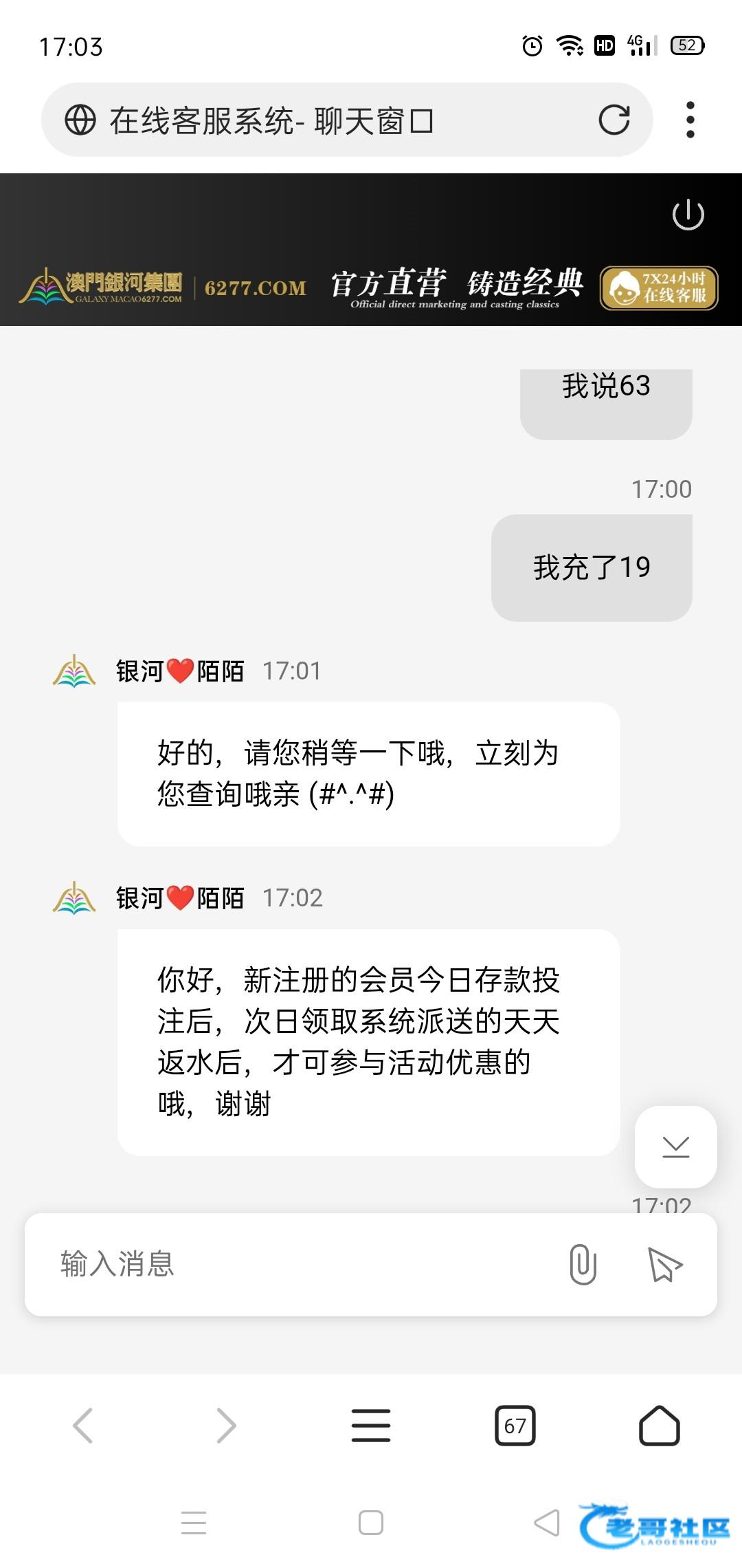 ywh5588 ▶ 一定会中奖 不用,这个台子是以前找以小博大10+18打的,没出款,前段时间有人发有回归彩金领了58,这个63翻优惠看到的,反正陆陆续续一周存个1.2百刷刷水,然后就弄这个63 8月前