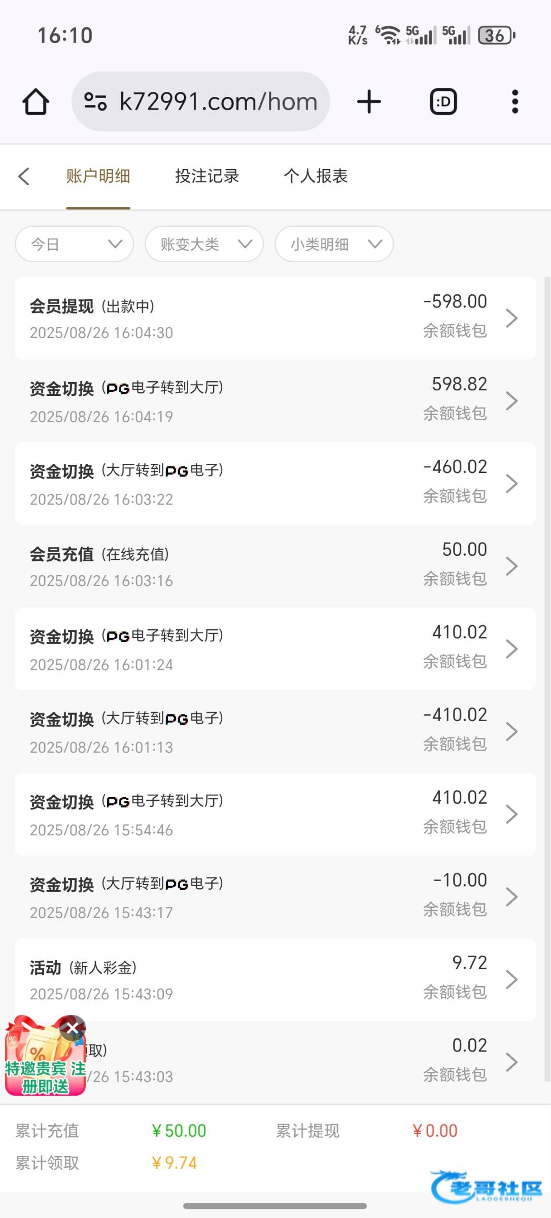 要么卖黑分,要么进财神捕鱼打流水存那个箱子 余额打完冲2.30领反水开箱子,估计必黑台子