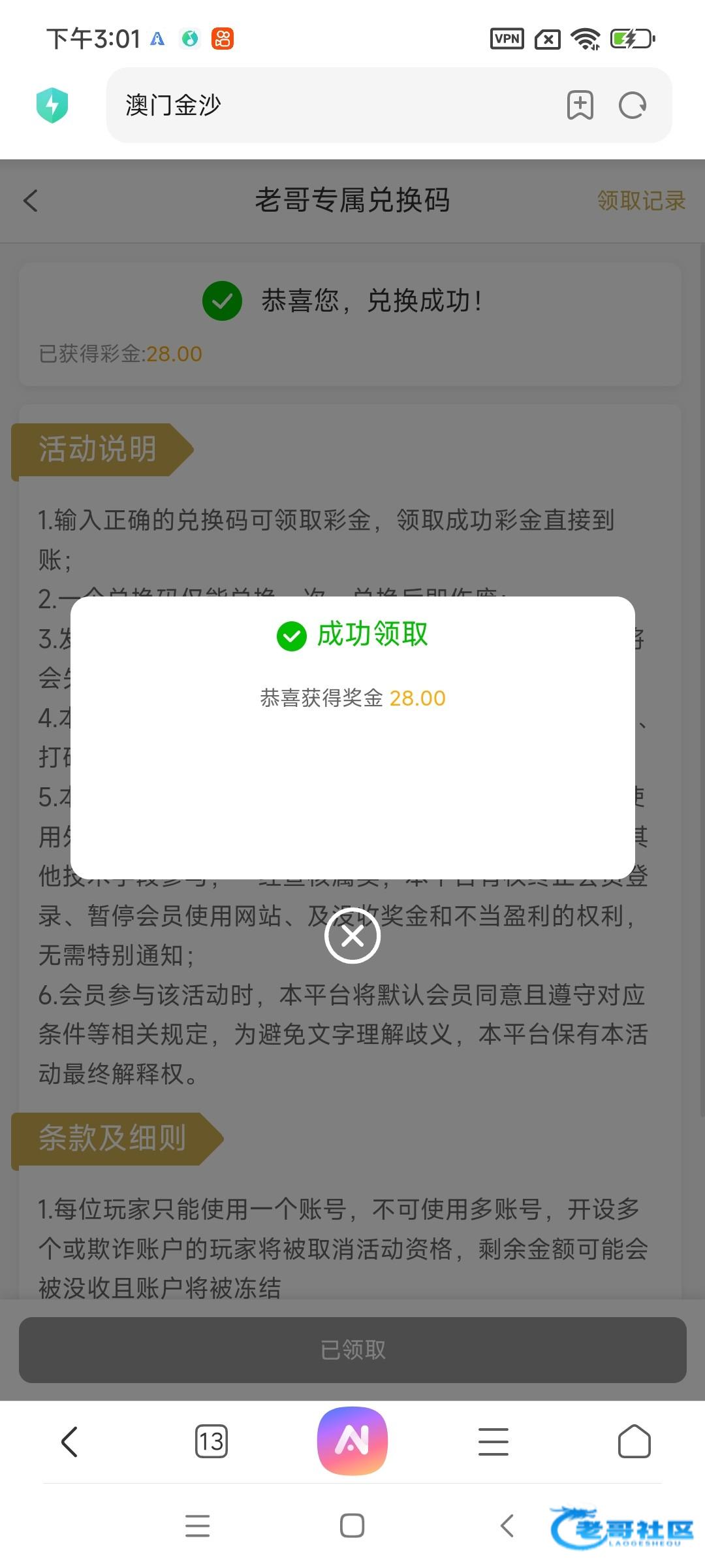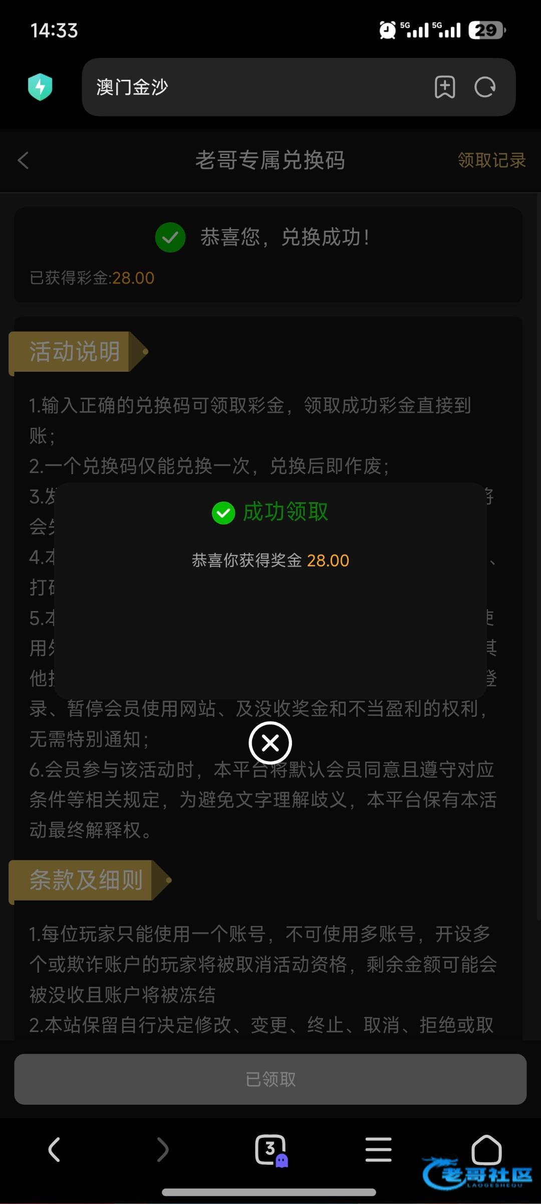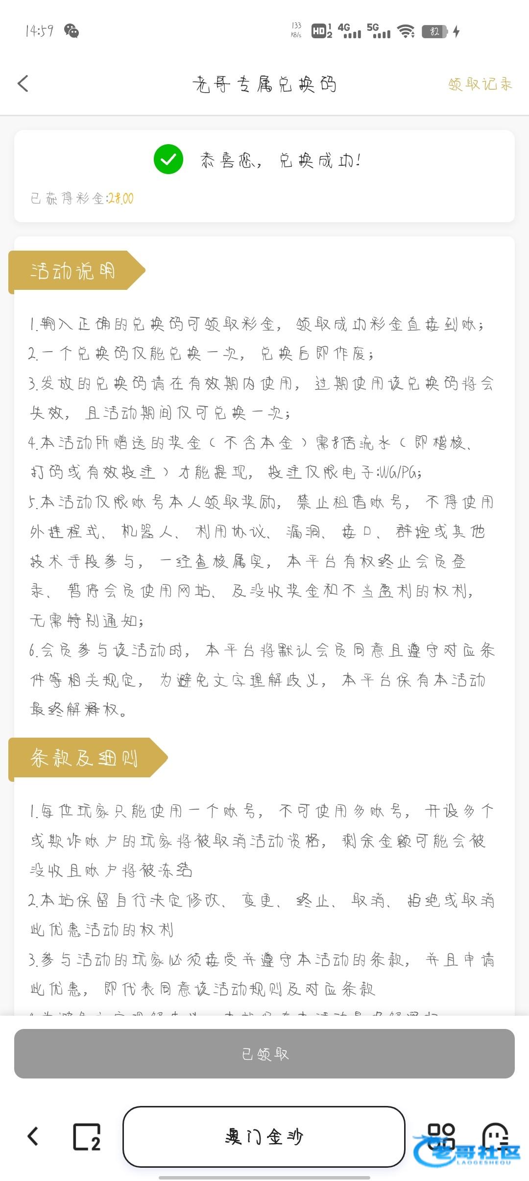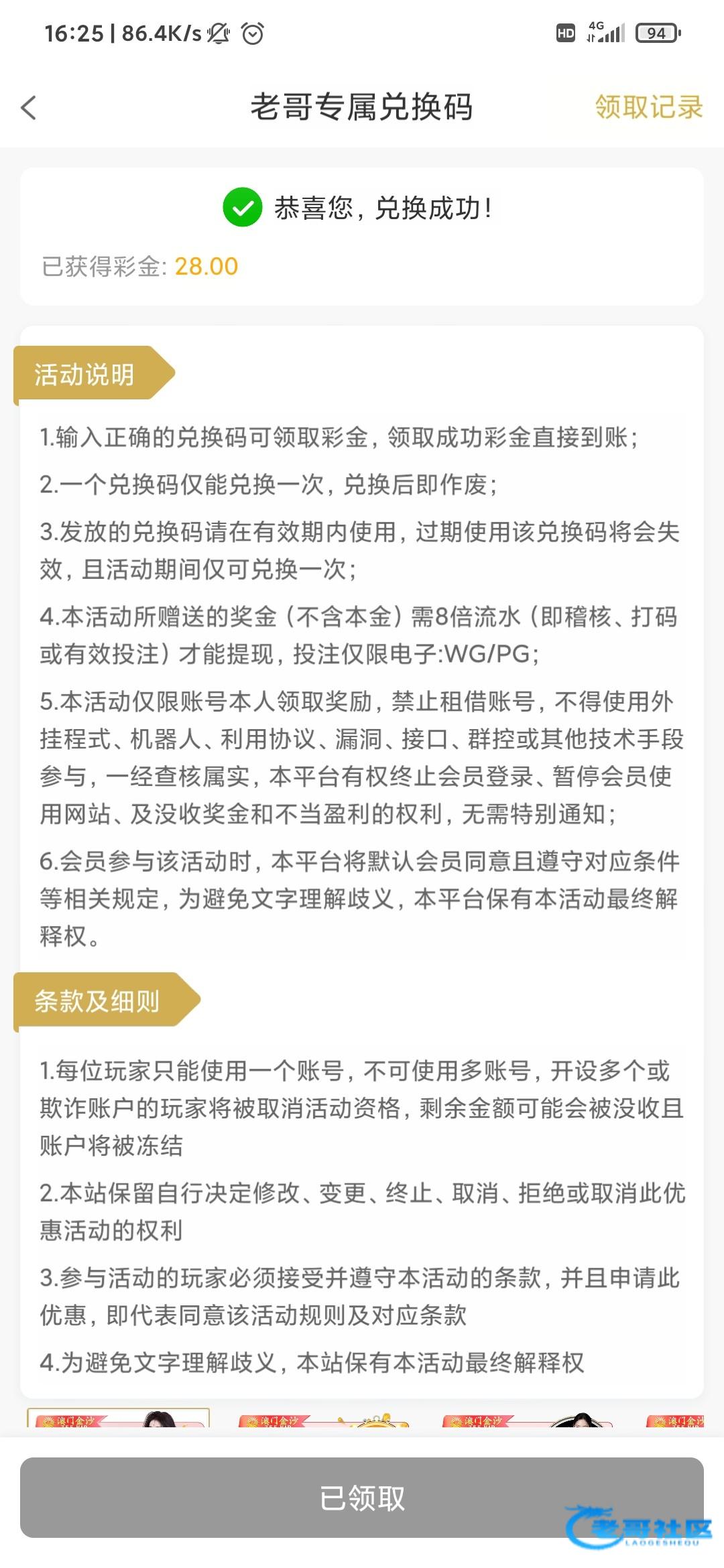 感谢老哥领到了
