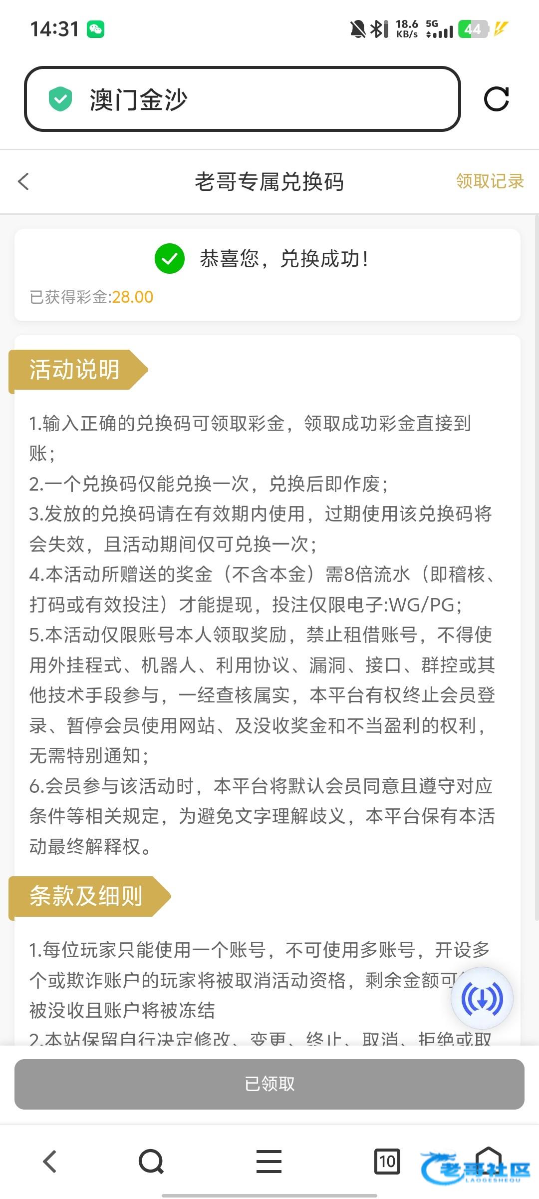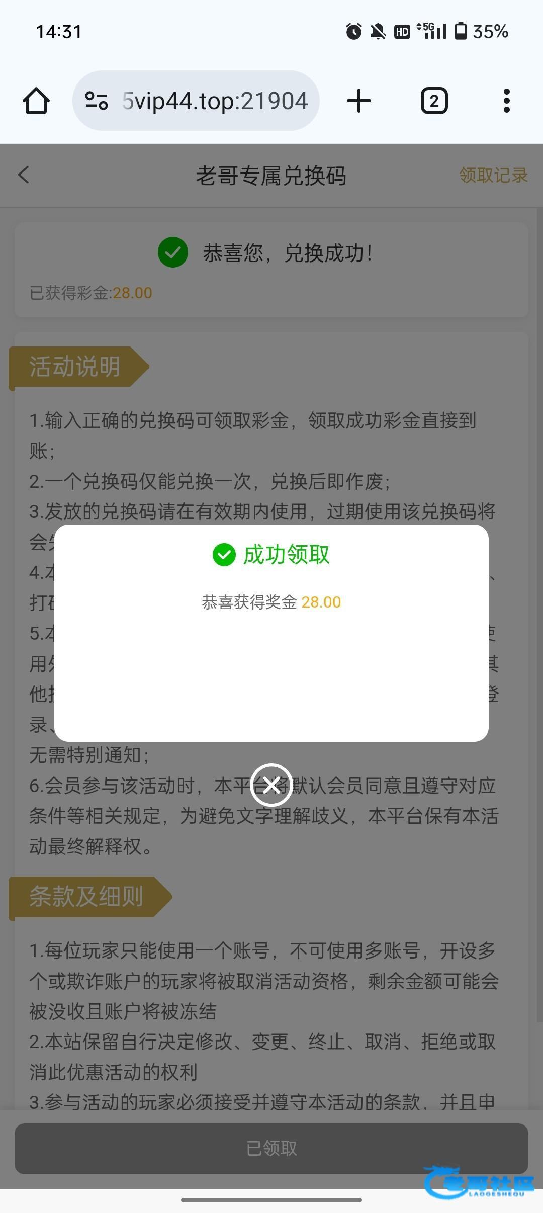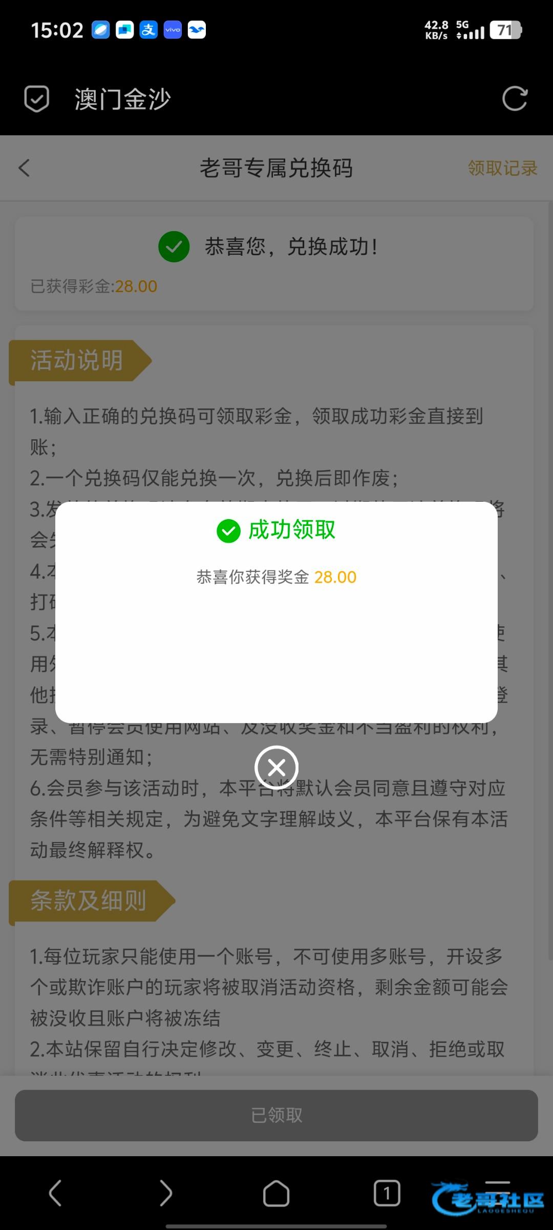 感谢老哥领到了