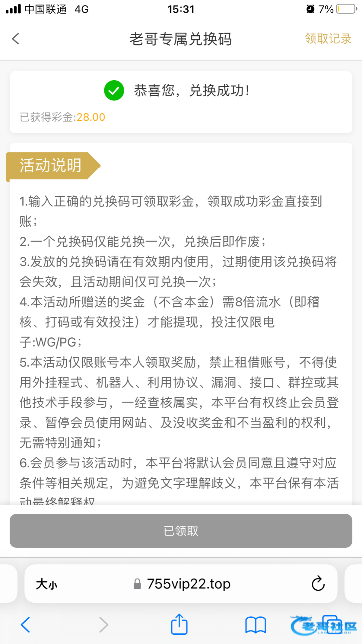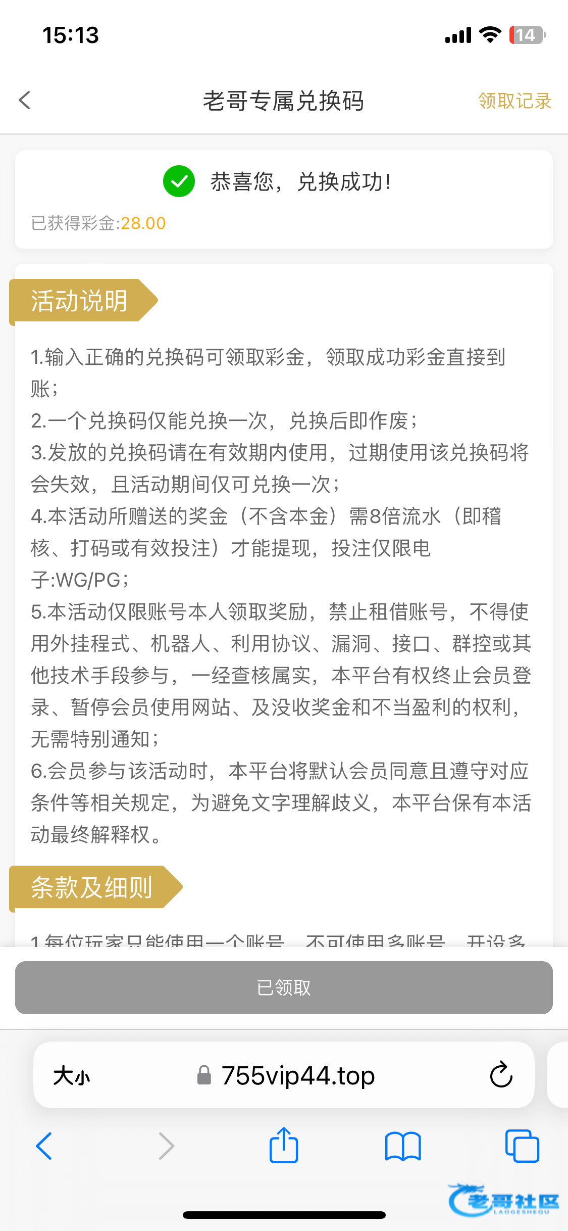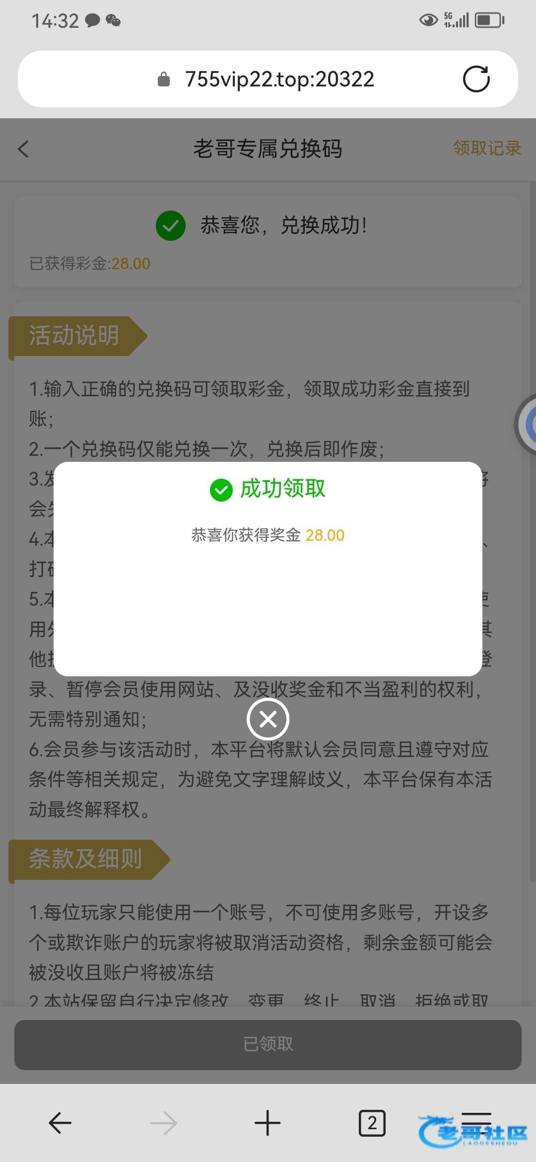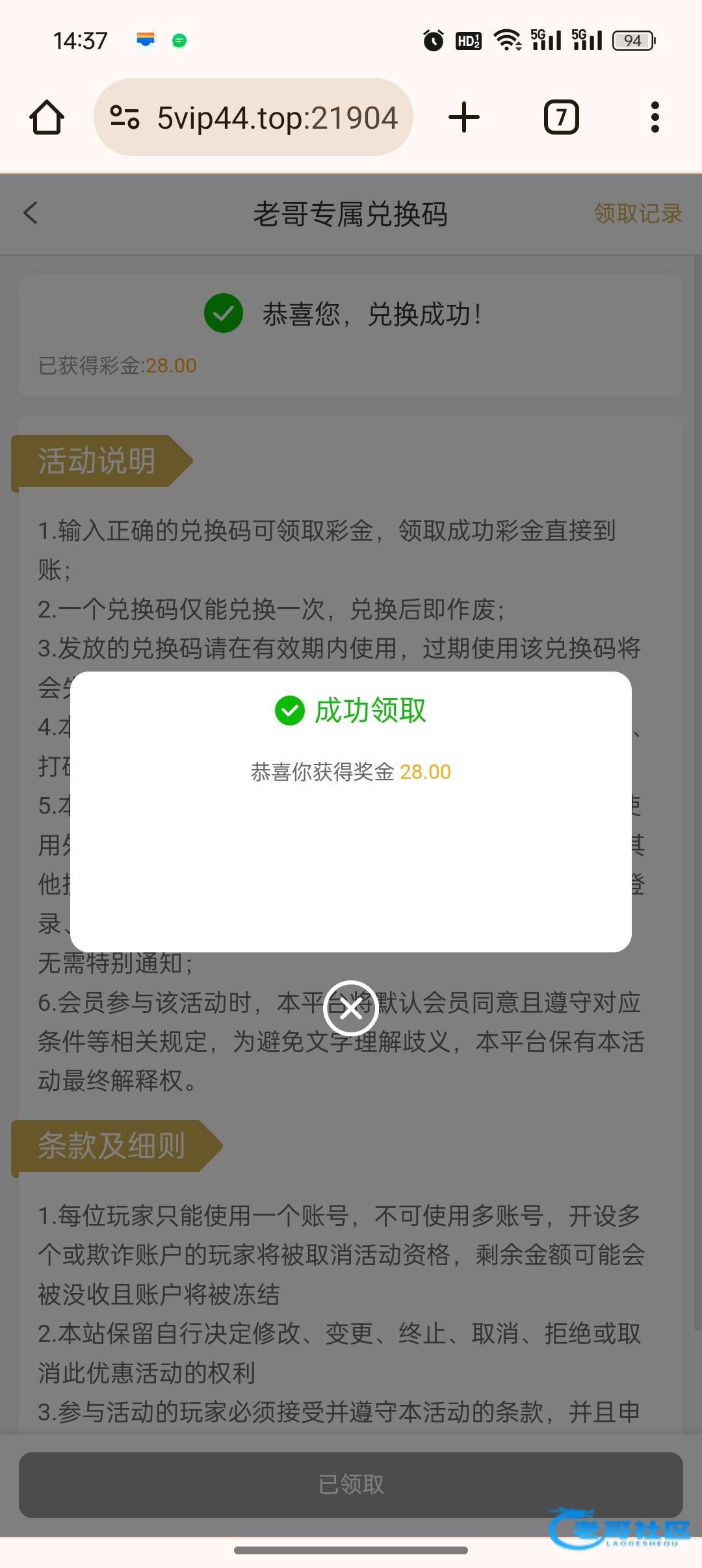 感谢老哥领到了