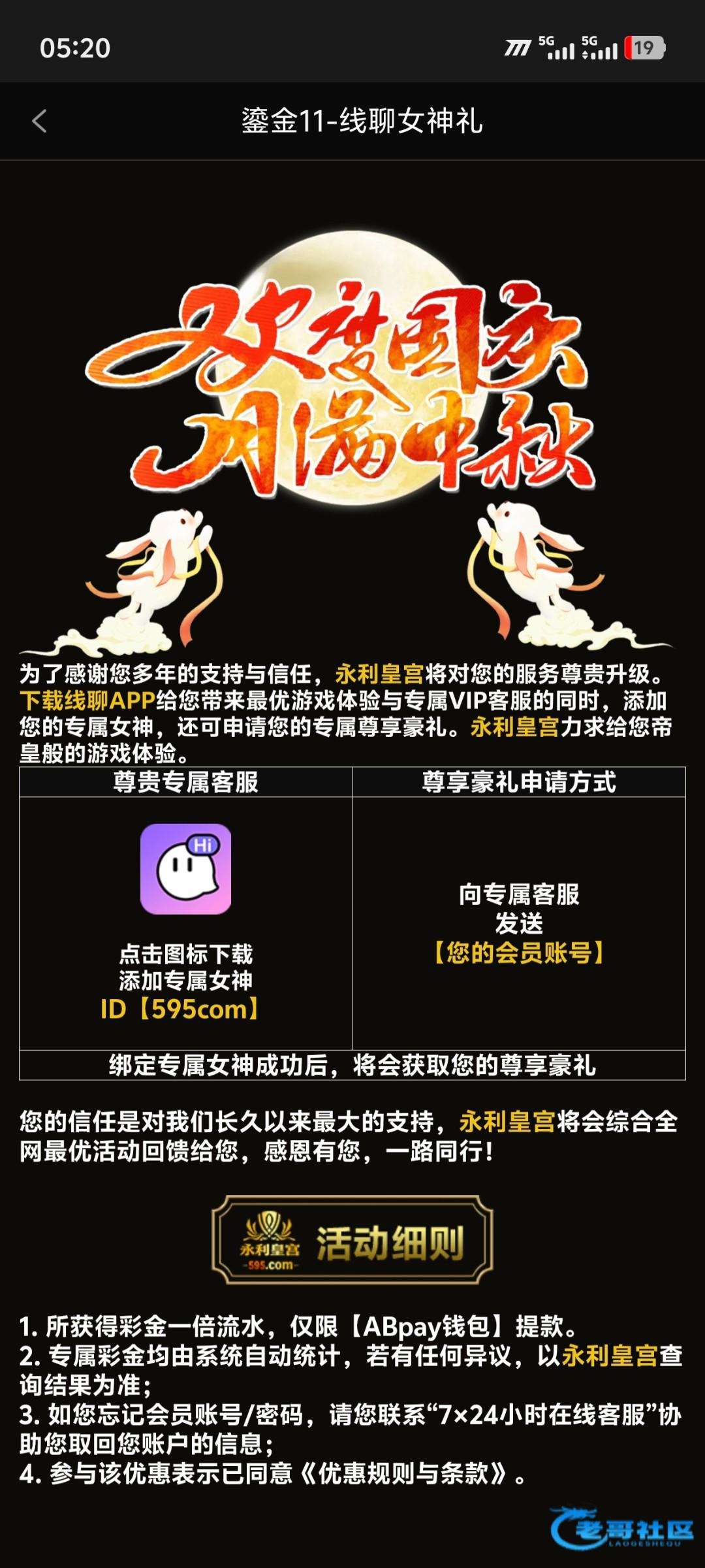 595.com线聊彩金,有充值过100的可以去找客户申请,我只充值过100,给了68