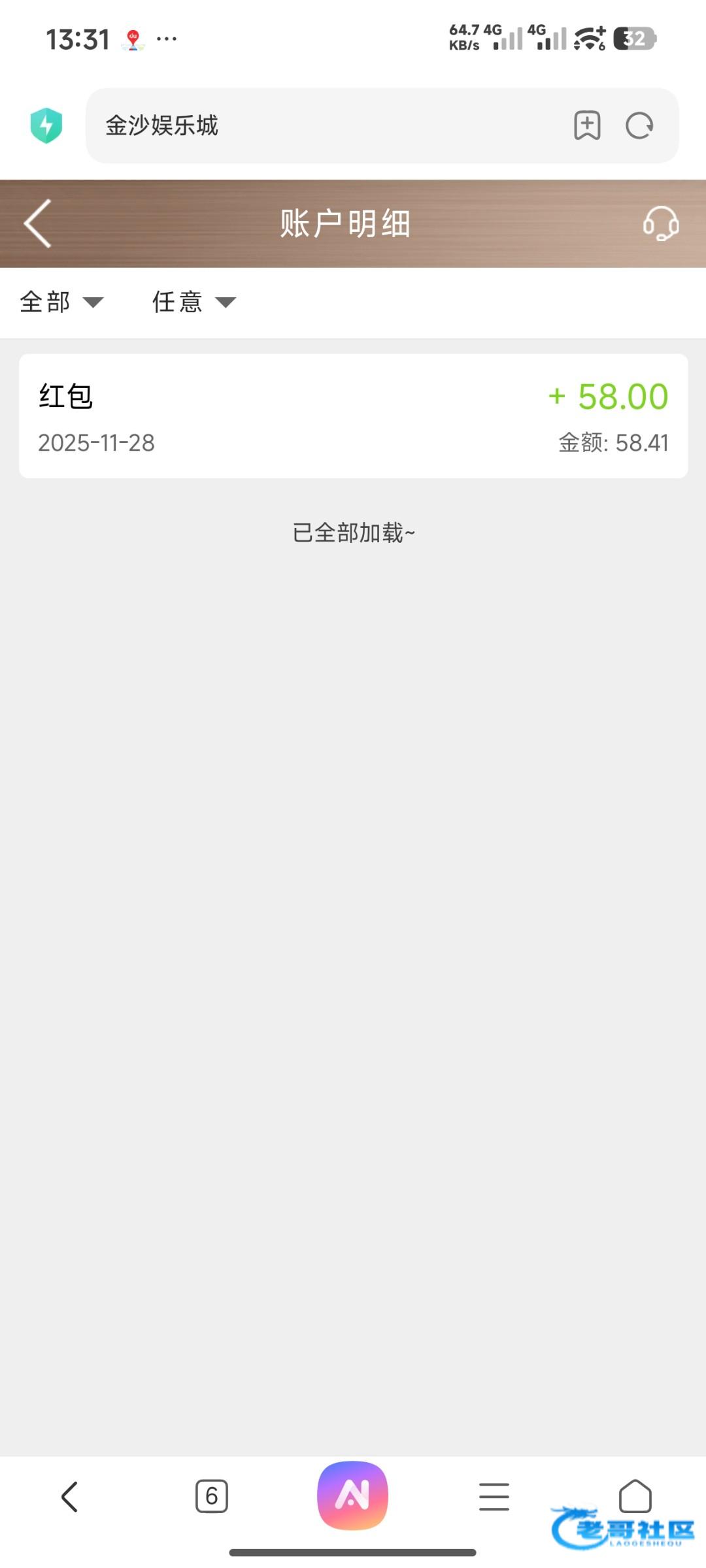 送58收到短信就登陆上去看了一下,登陆就有,我充值过,不过有一两年没充值了,VIP3,应该是登陆有就有没有就没有。链接hgcj.us