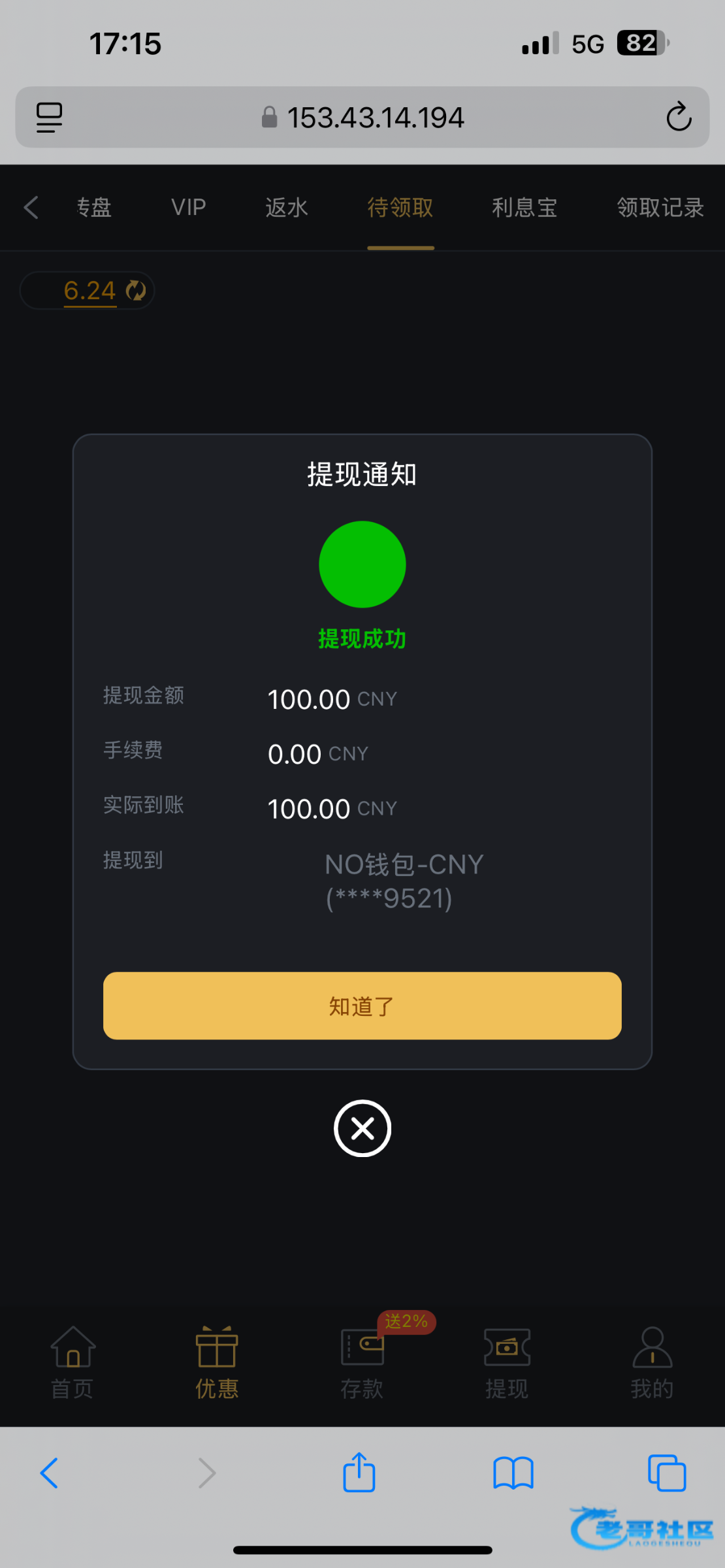 提款已到账