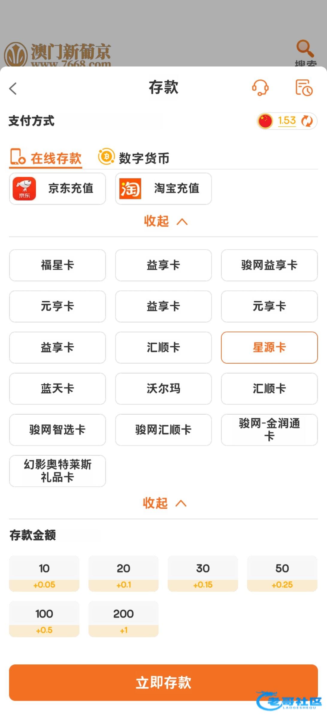 老哥们,星源卡哪个台可以充啊