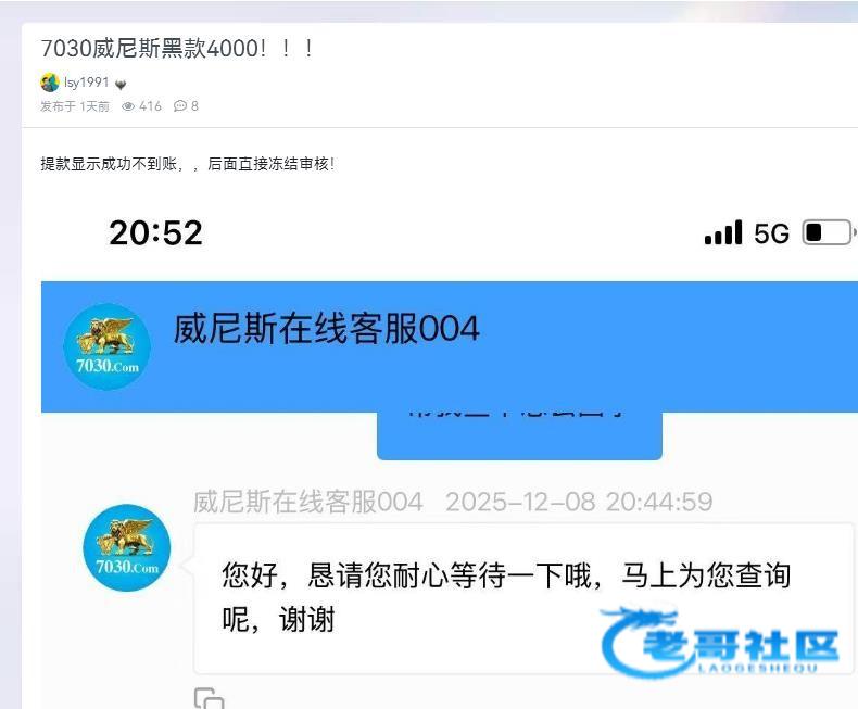 9030  正常充值100  提400  说账号异常  审核处理一天了    账号也不冻结  也不退款    不知道什么意思