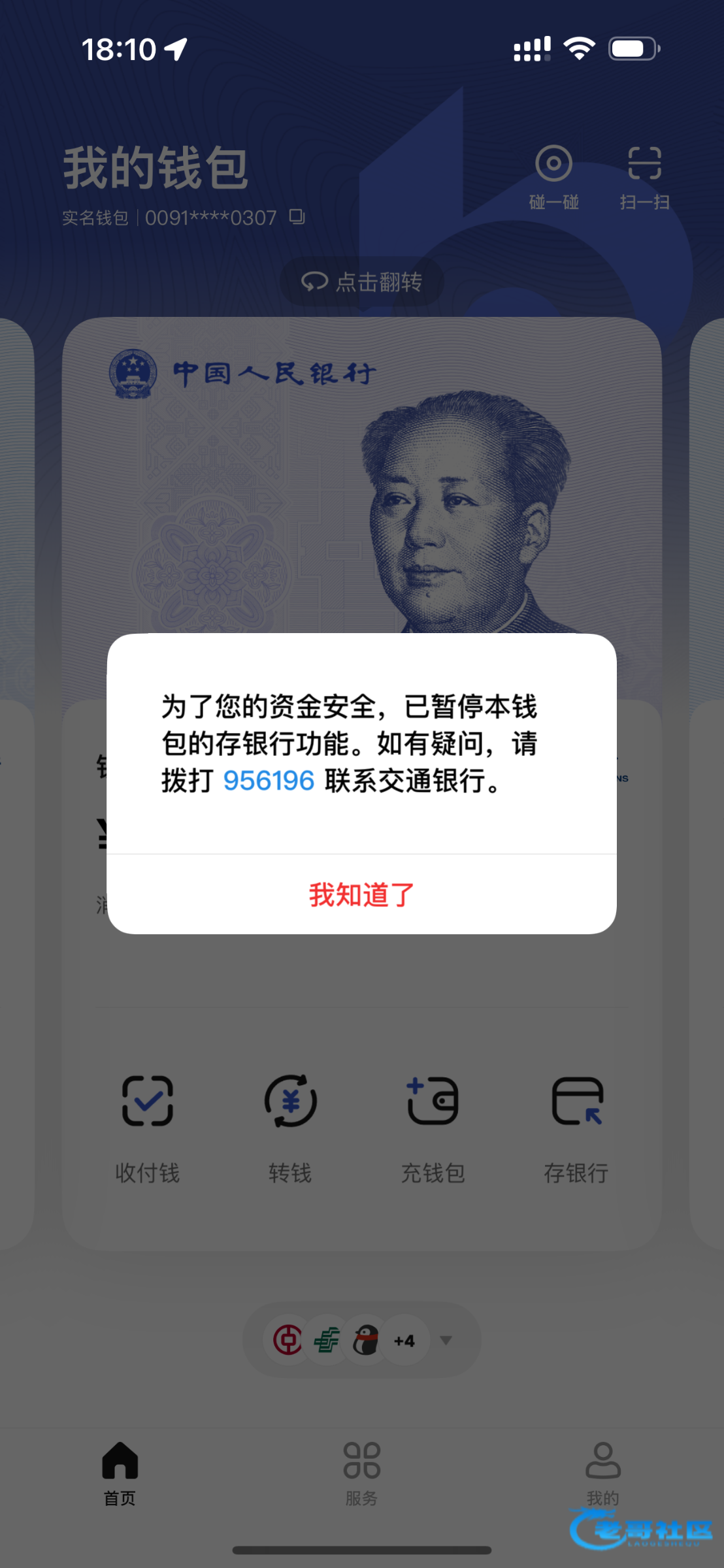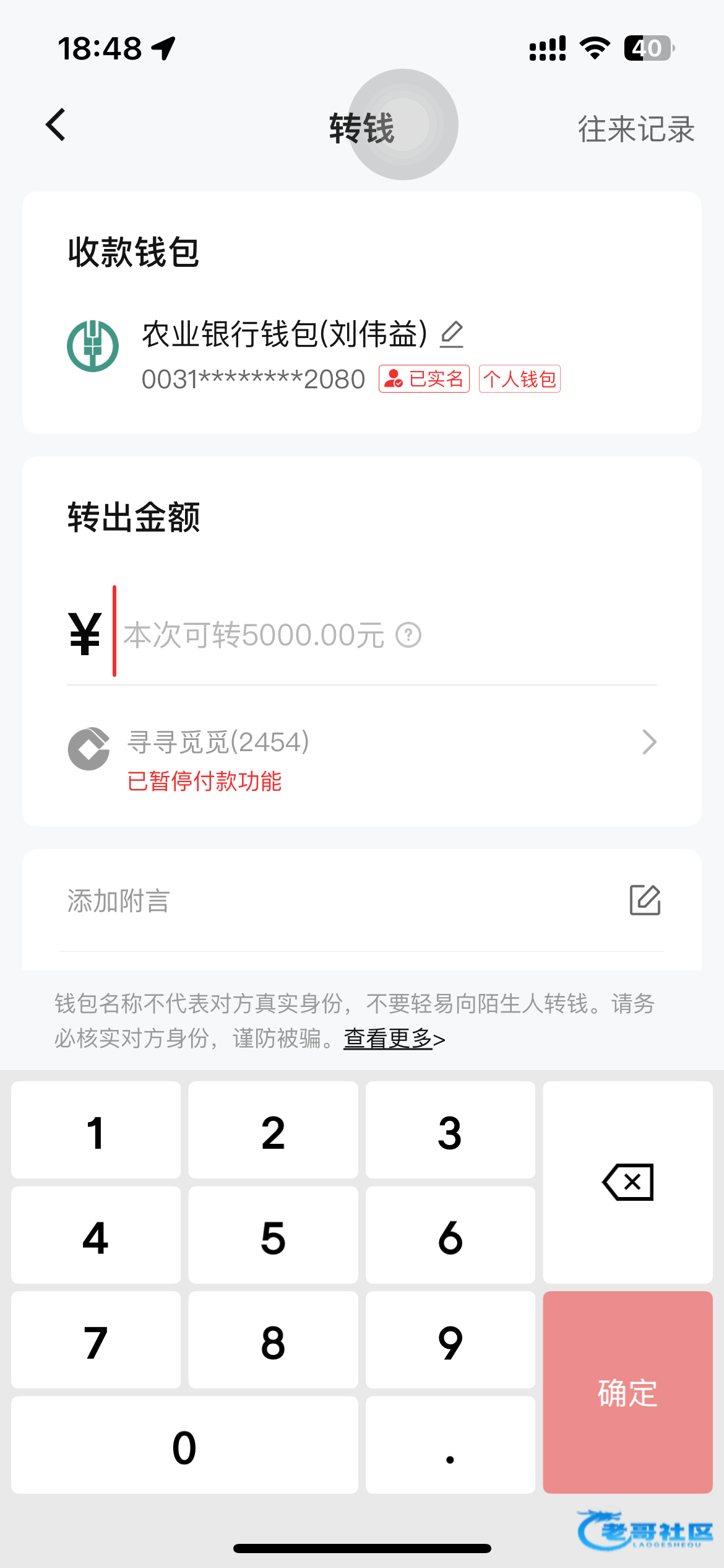 他这是能转的 只是不能用现在这个钱包存银行而已 我又不是没遇到过 换个钱包就可以存银行卡了
