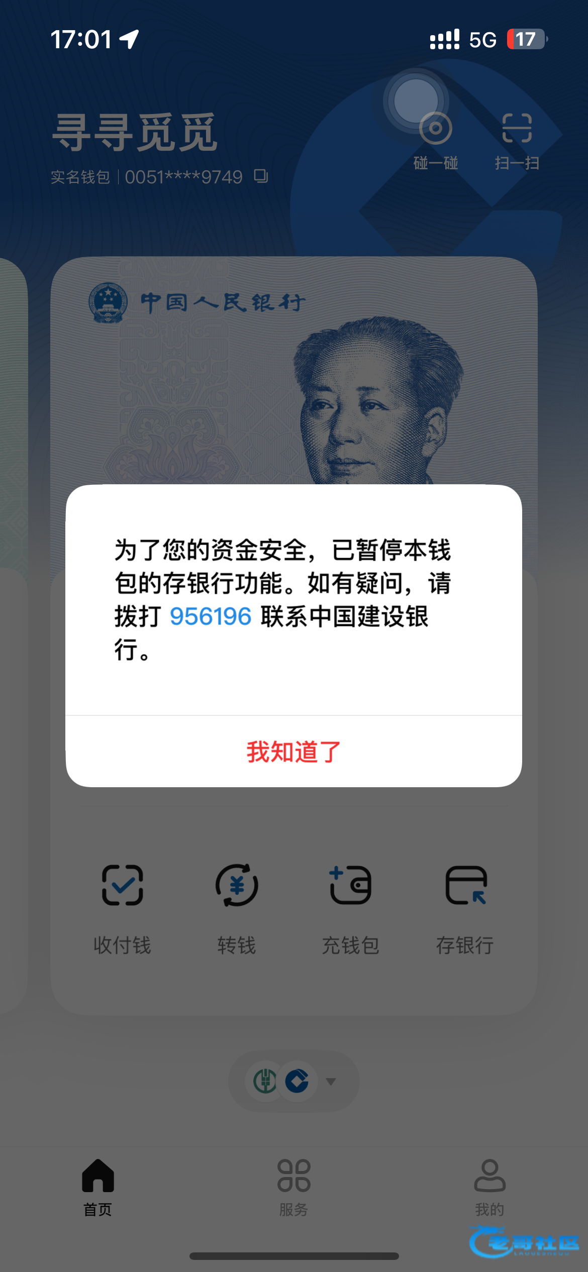 你这看着只是暂停存银行功能啊!找个商家码扫出去试试呗